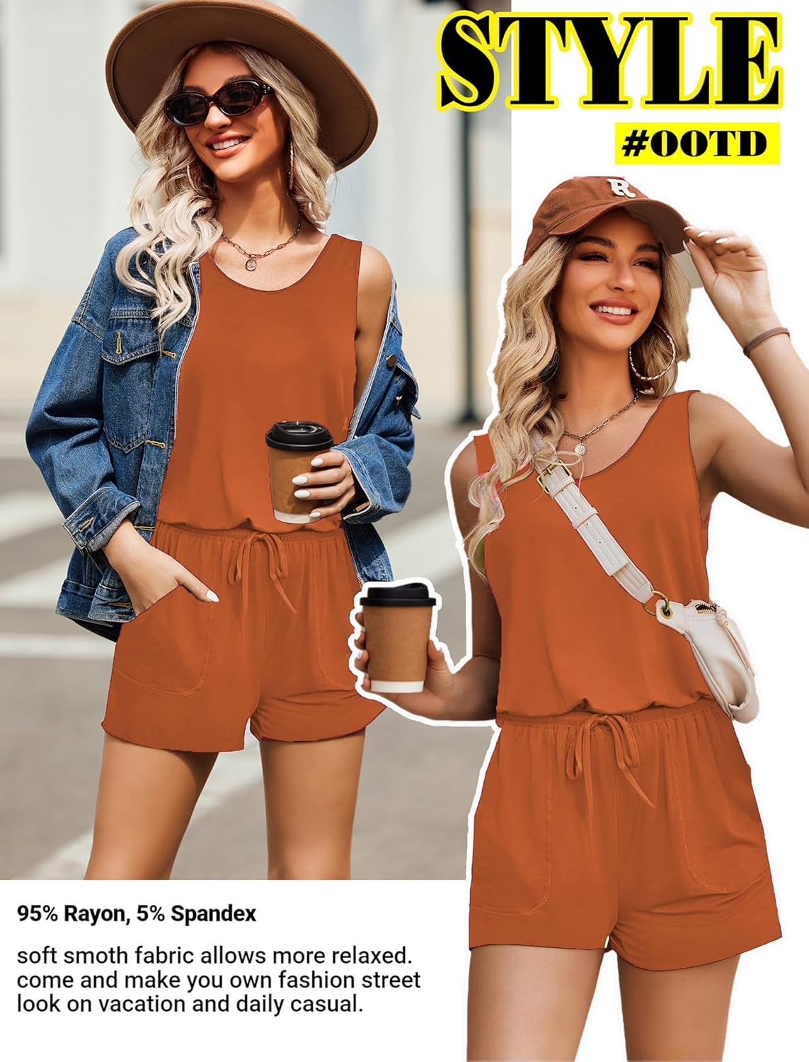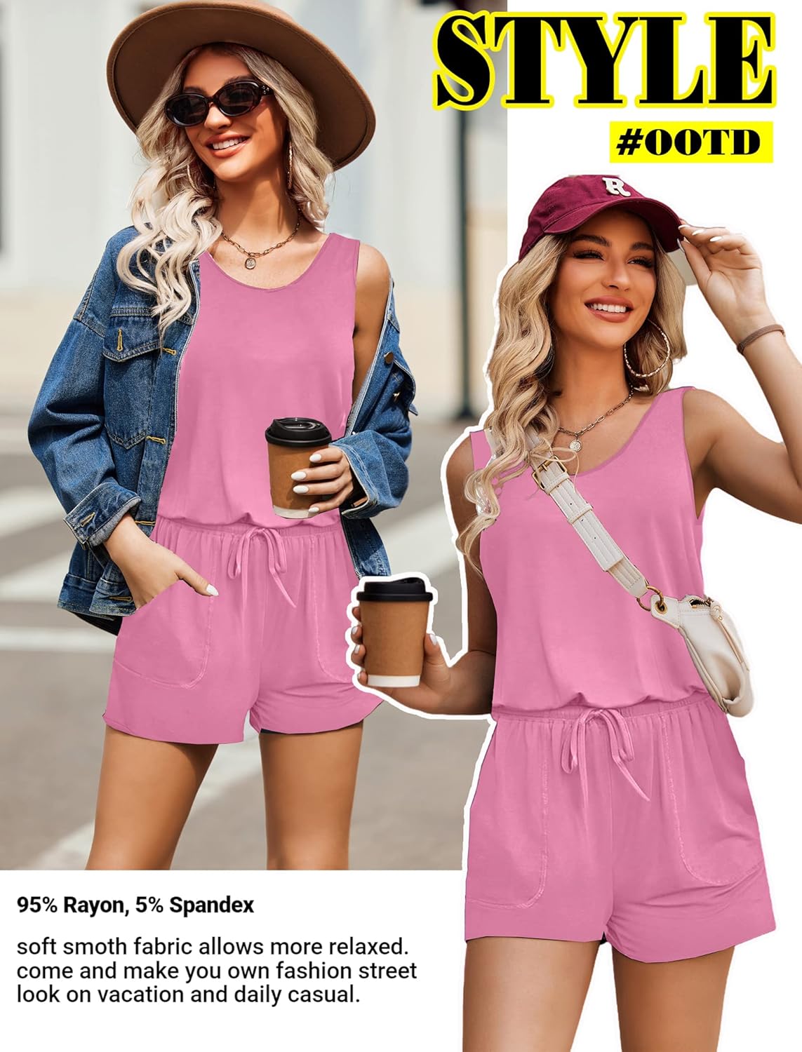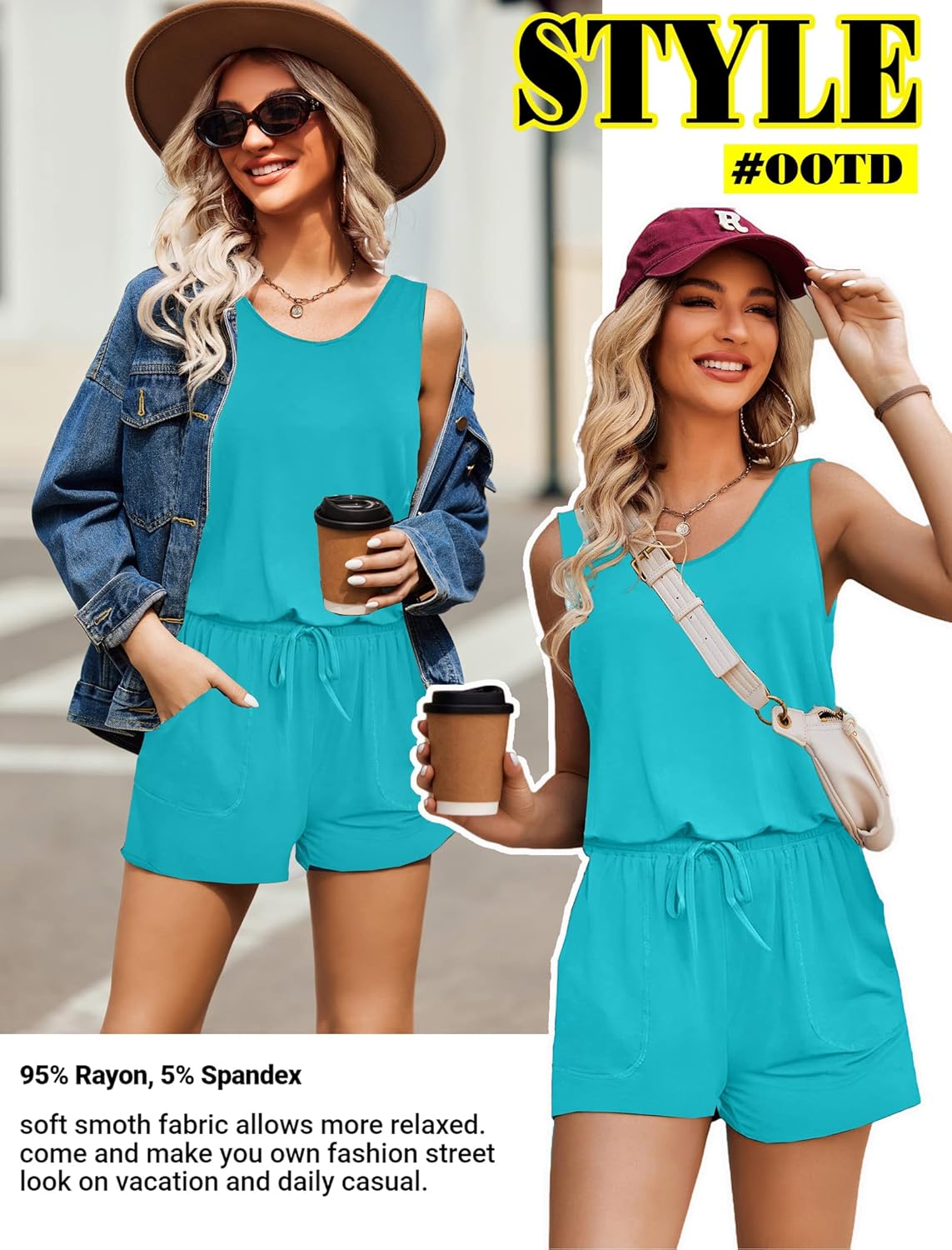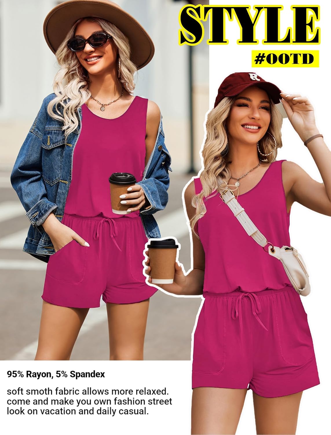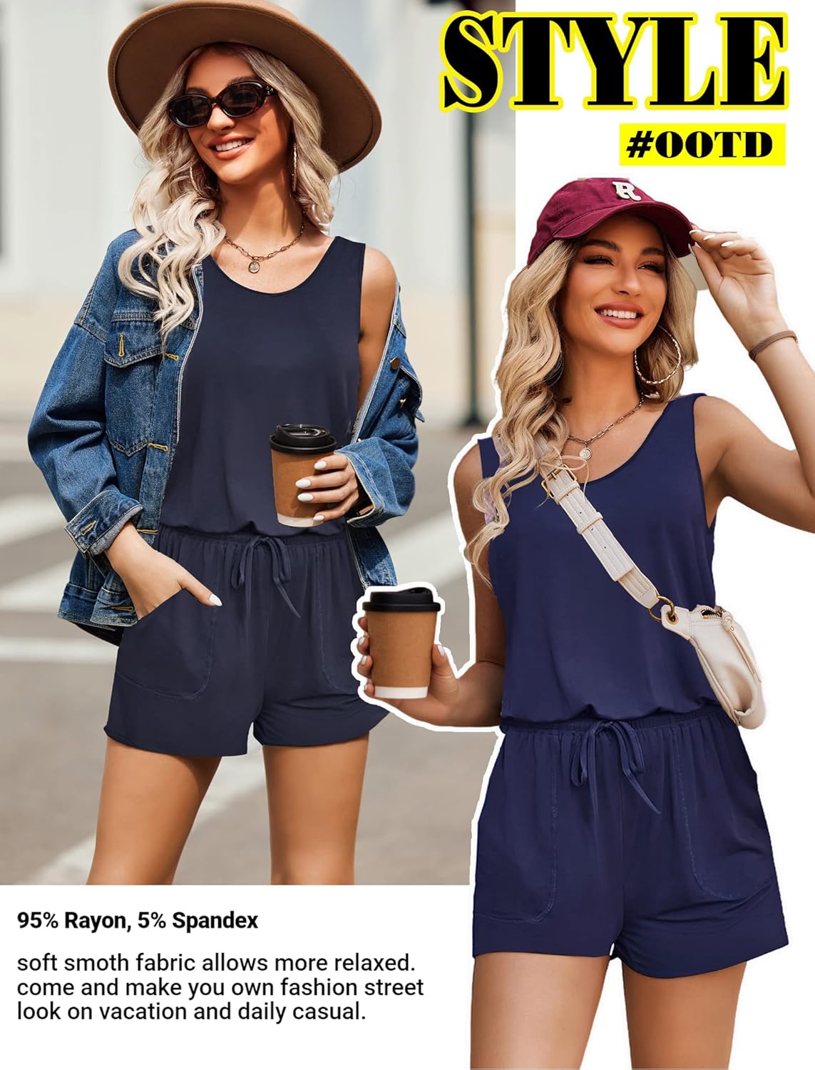 Women jumpsuits and rompers is made of high quality 95% Rayon, 5% Spandex, Comfy and super stretch to wear ,soft and lightweight.