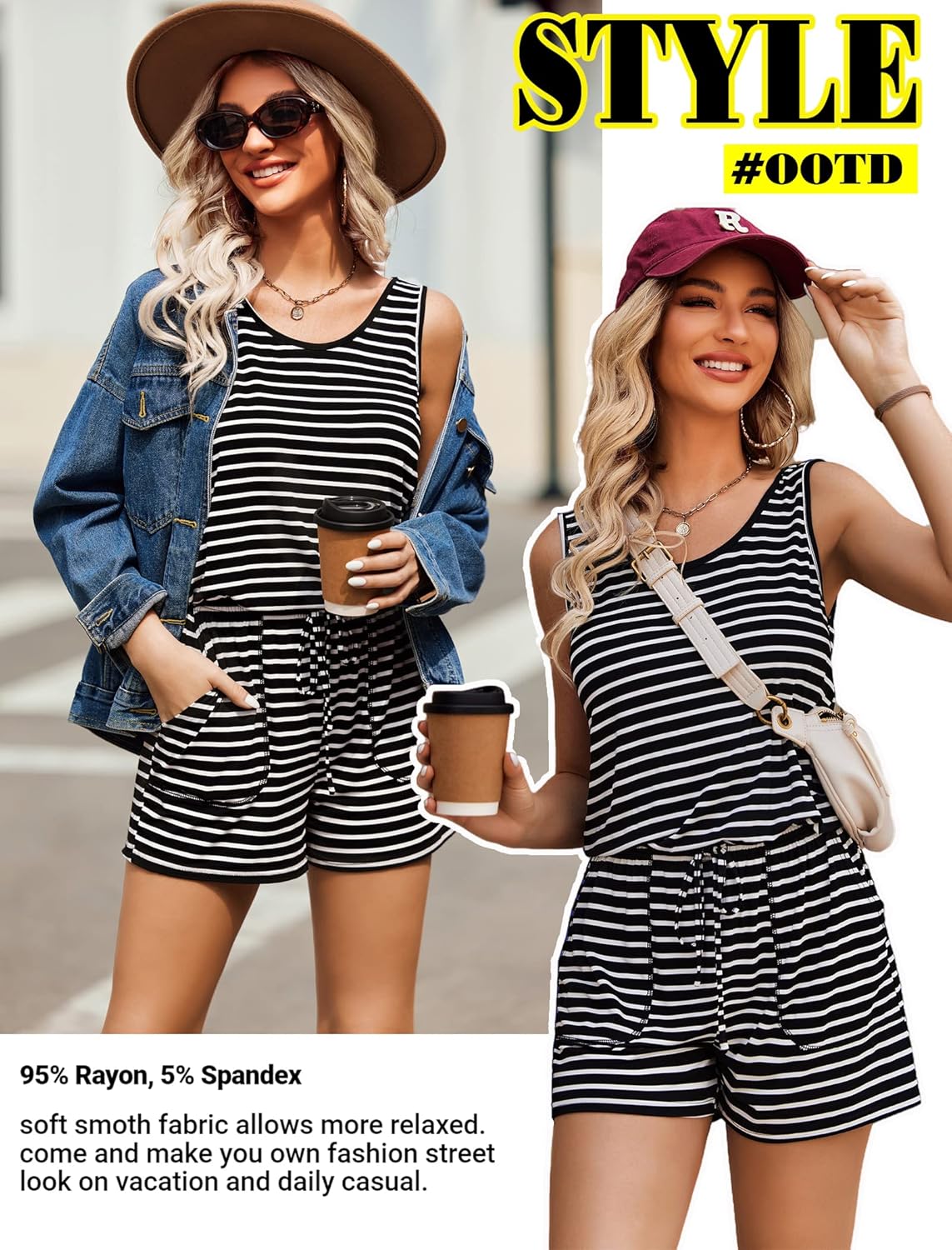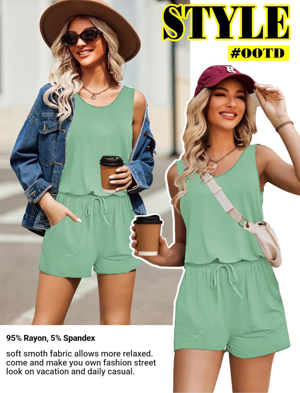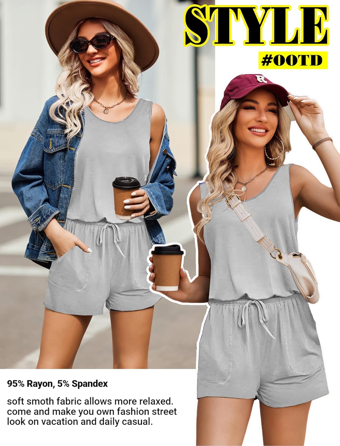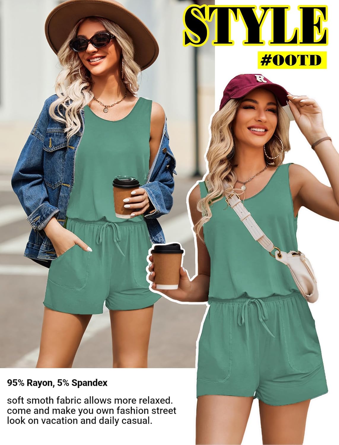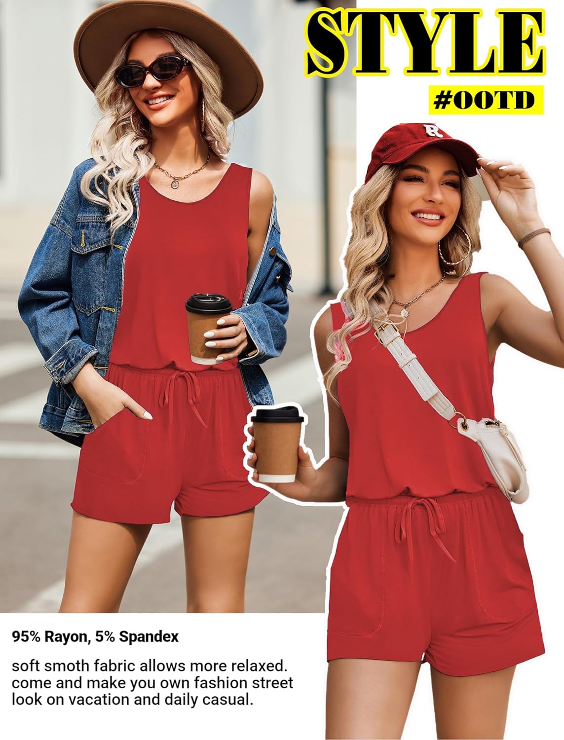 Women jumpsuits and rompers is made of high quality 95% Rayon, 5% Spandex, Comfy and super stretch to wear ,soft and lightweight.