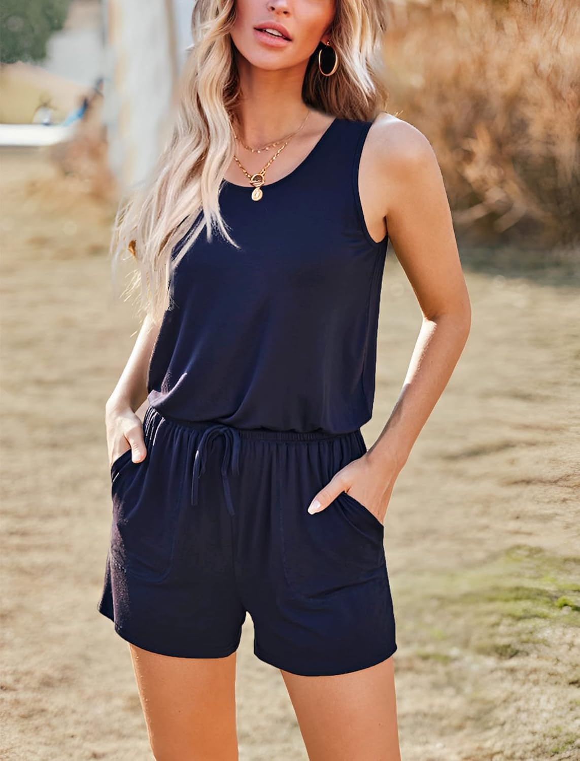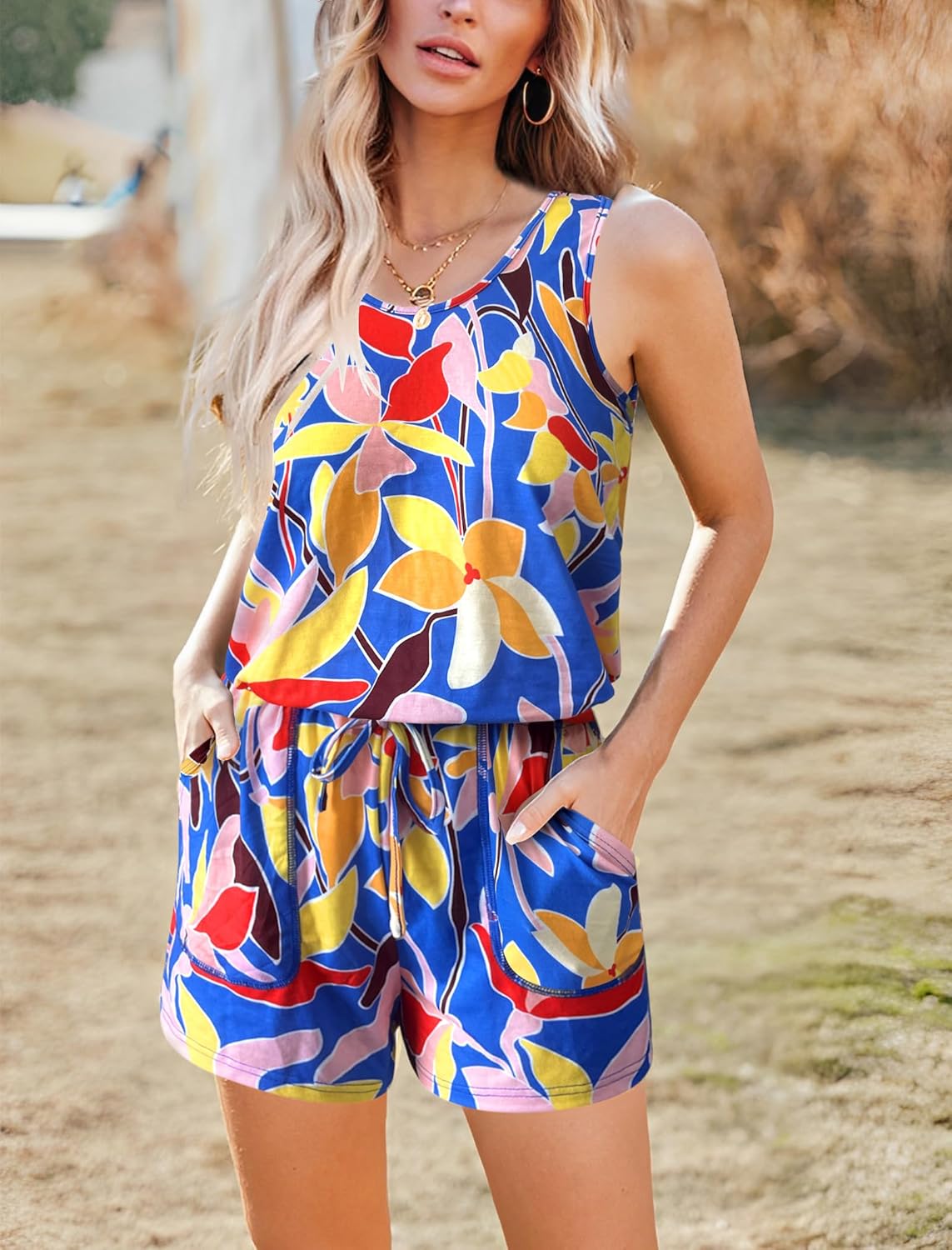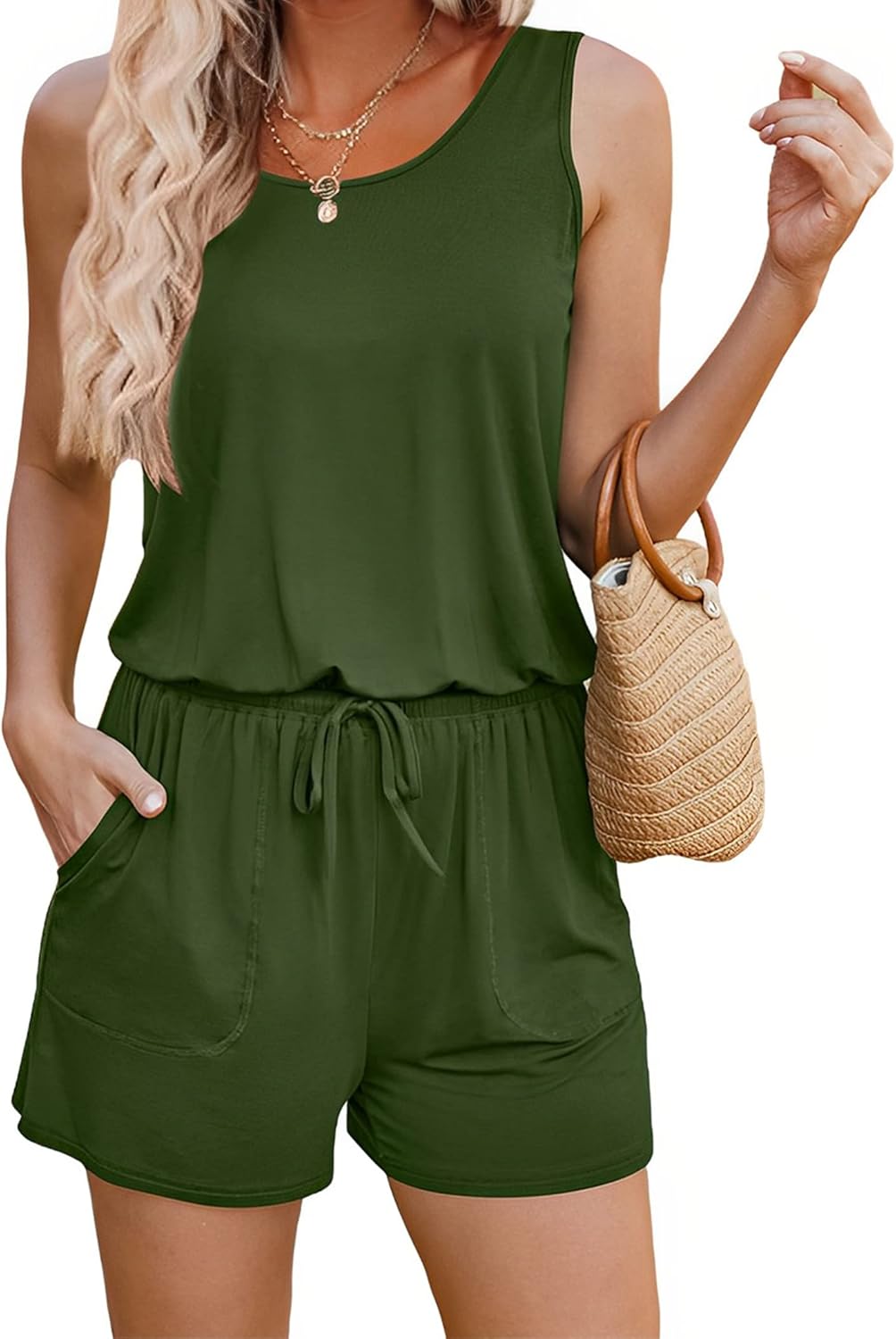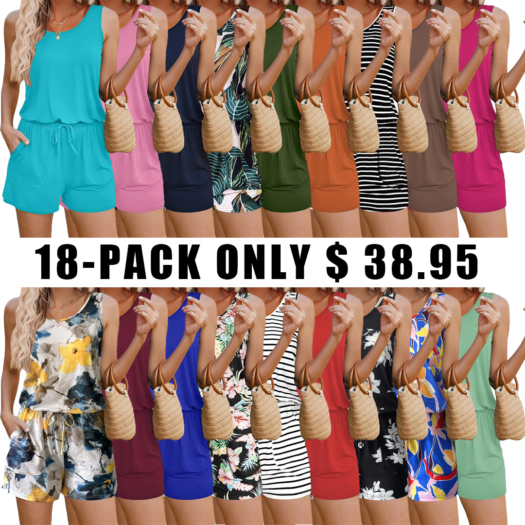 Summer Sleeveless Rompers for Women Casual Short Jumpsuit Rompers with Pockets