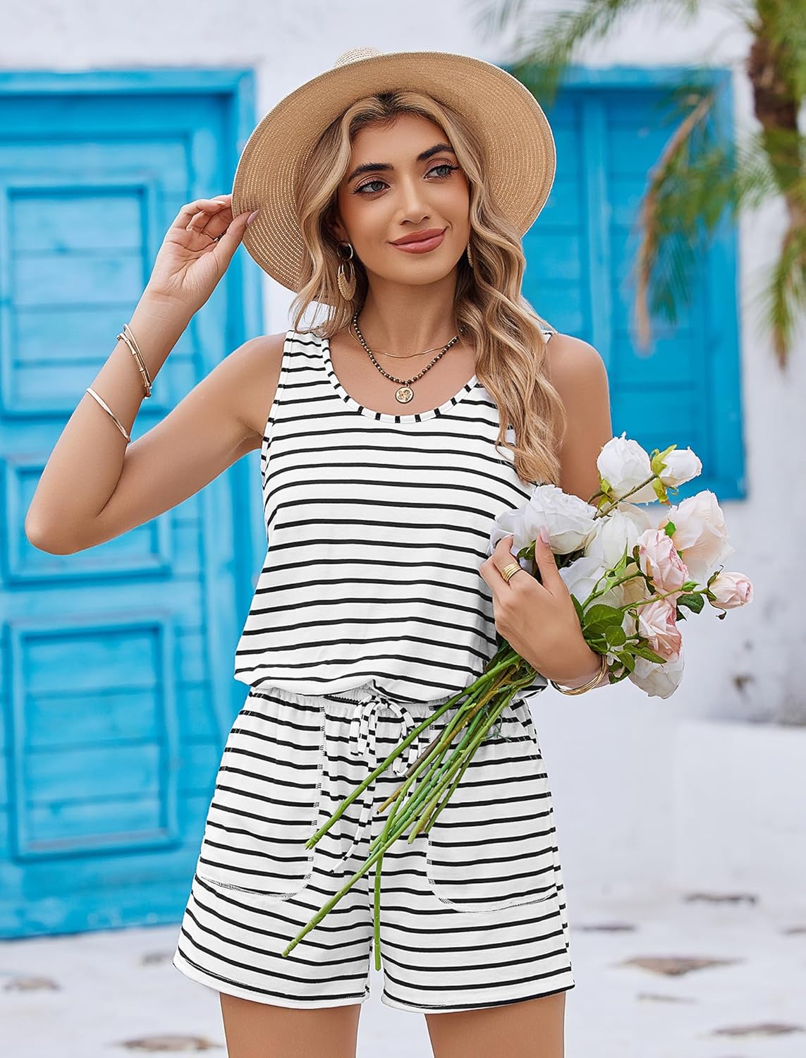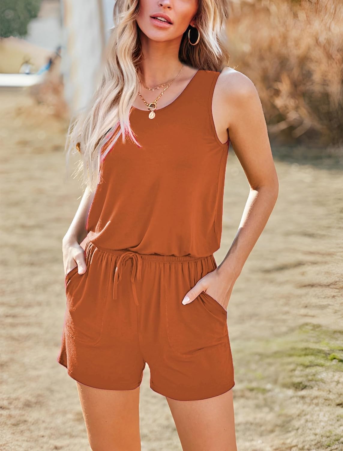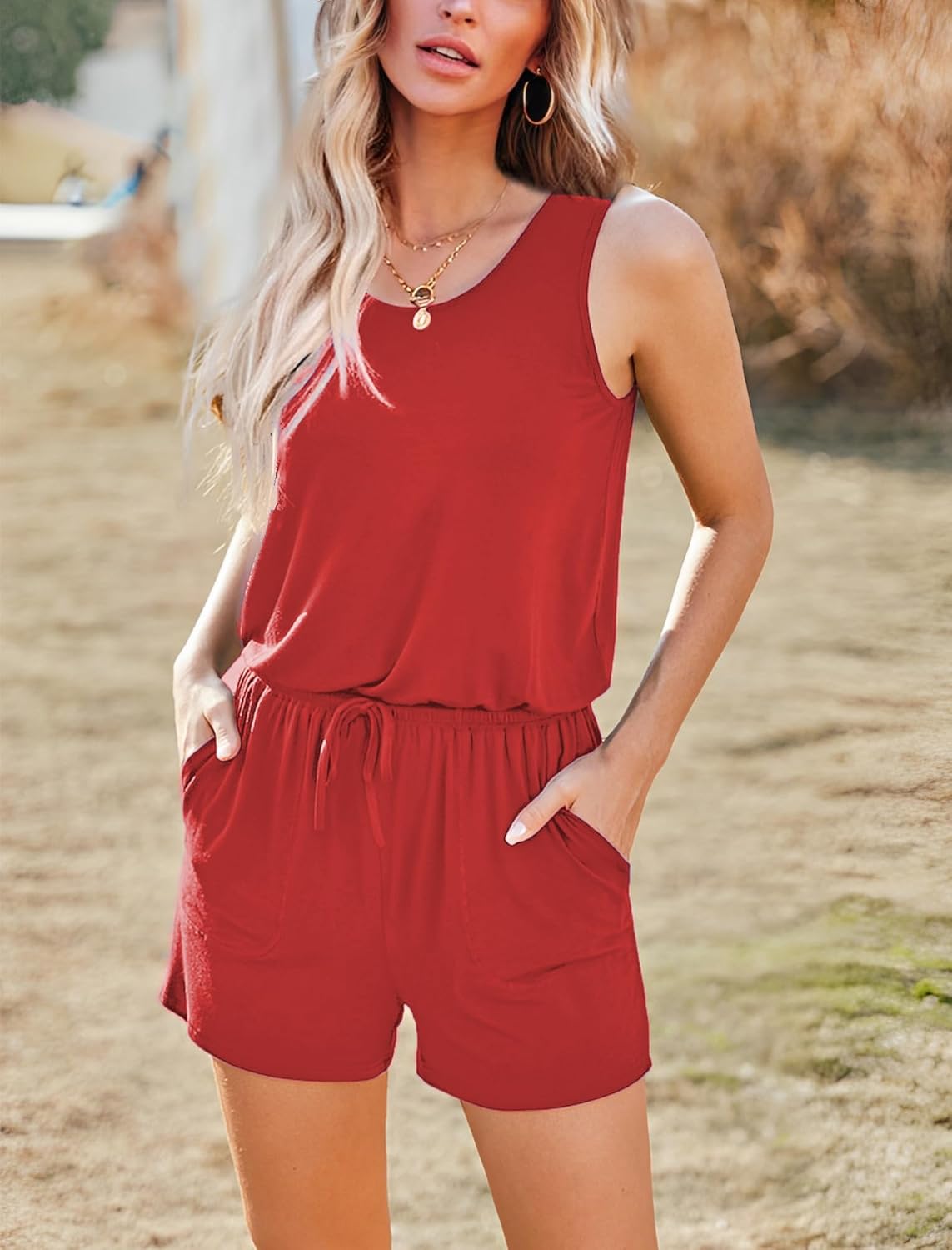 Summer Sleeveless Rompers for Women Casual Short Jumpsuit Rompers with Pockets