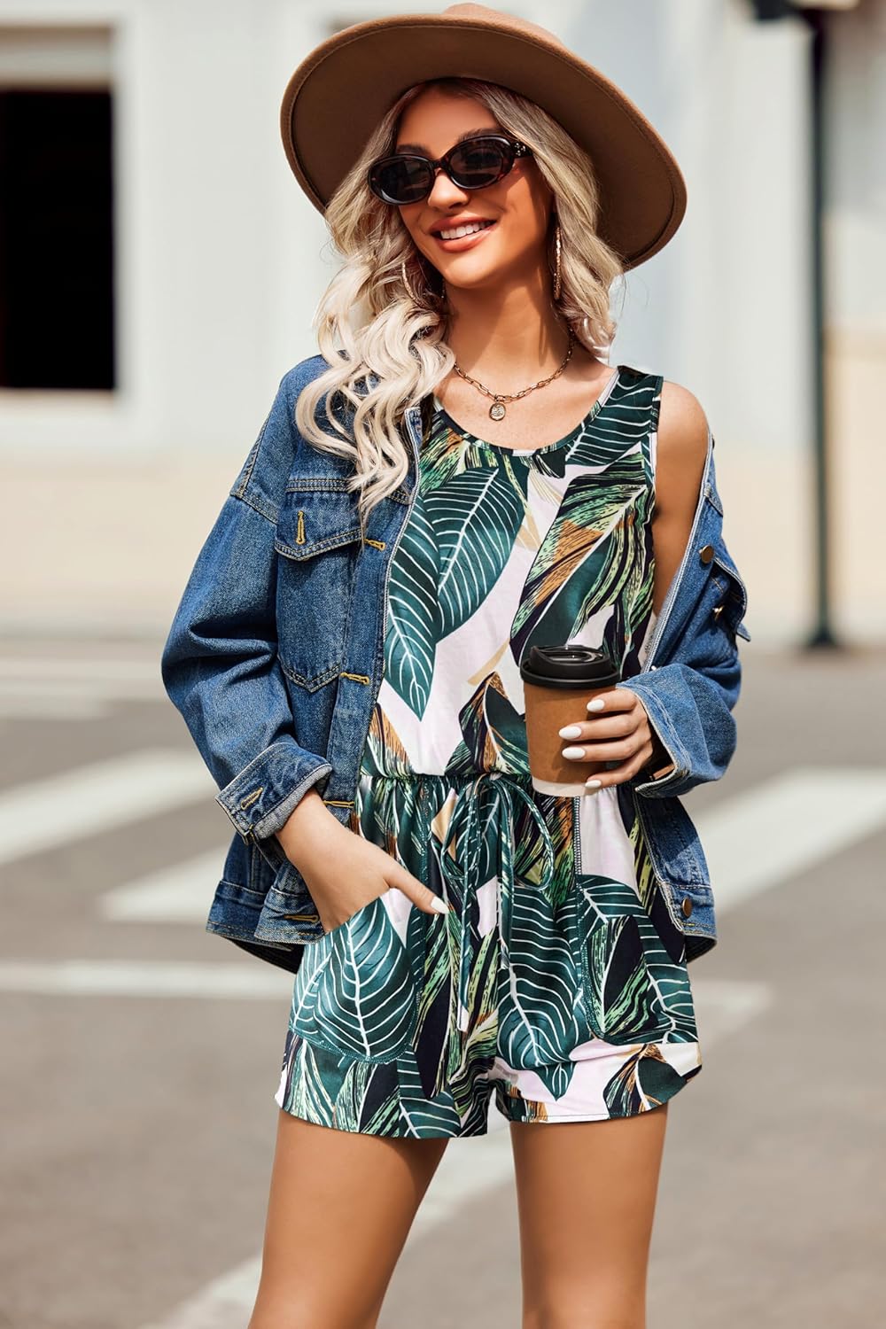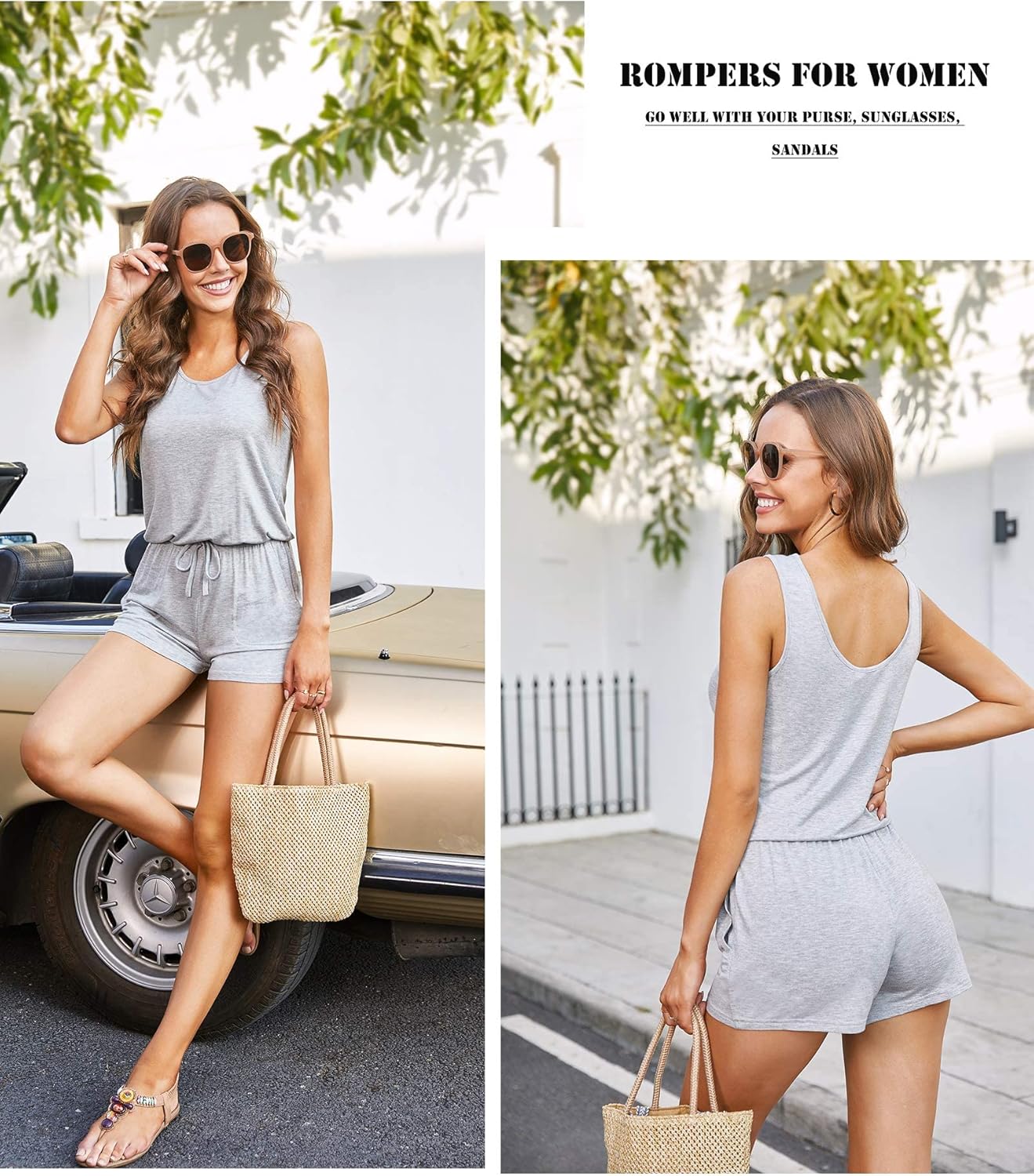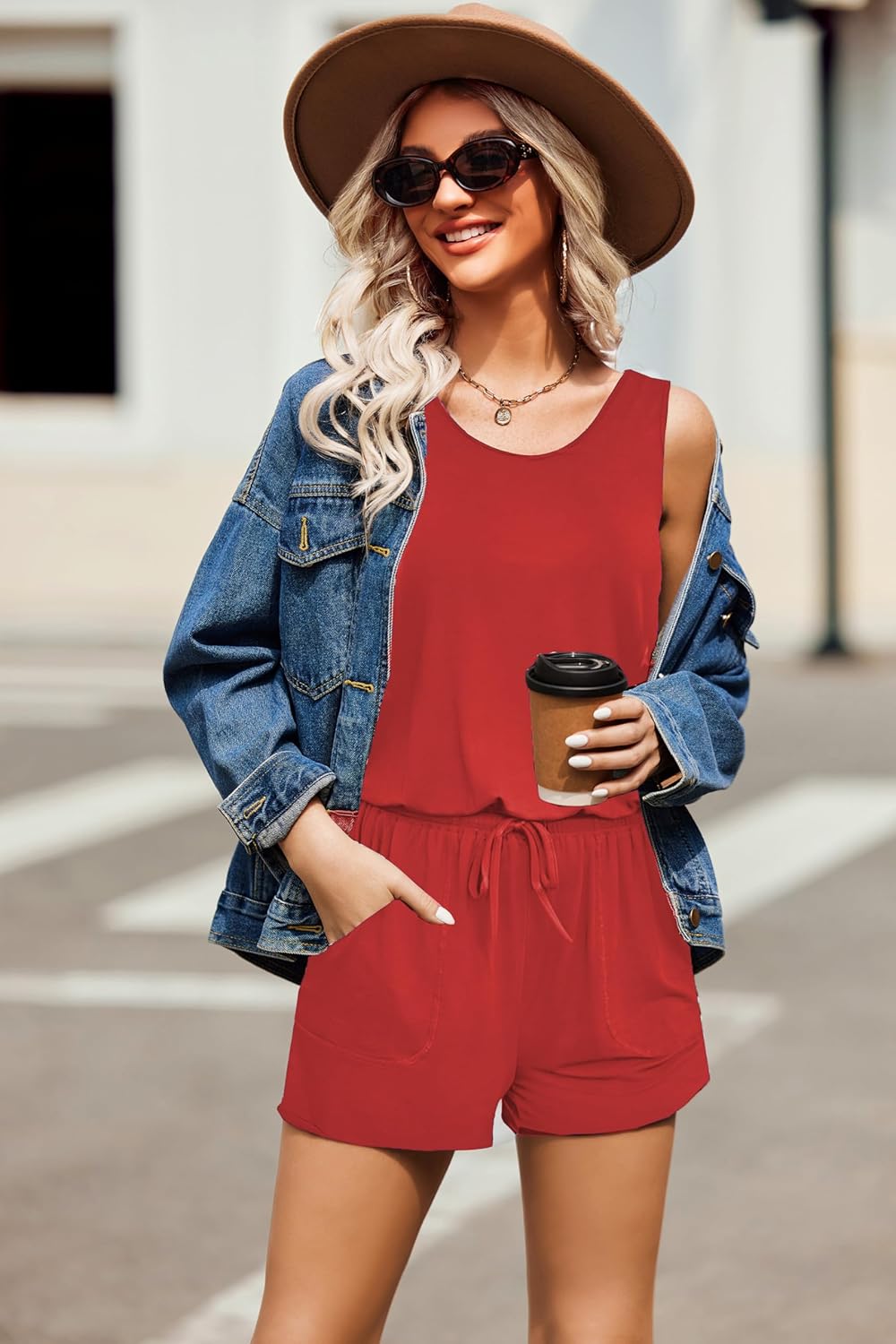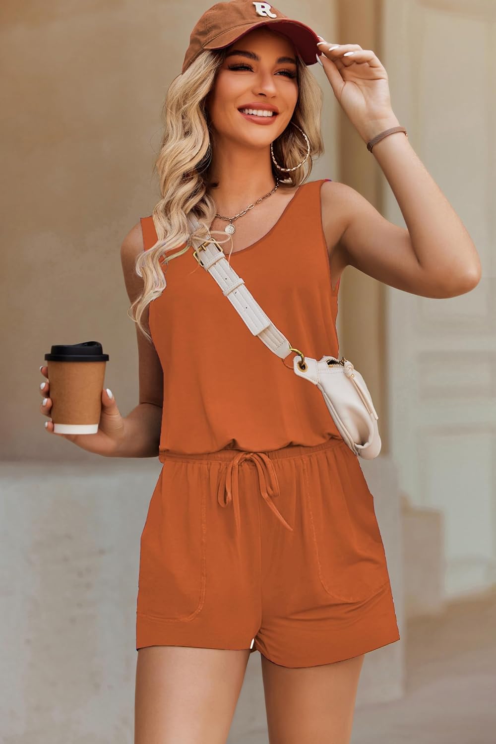 Summer Sleeveless Rompers for Women Casual Short Jumpsuit Rompers with Pockets