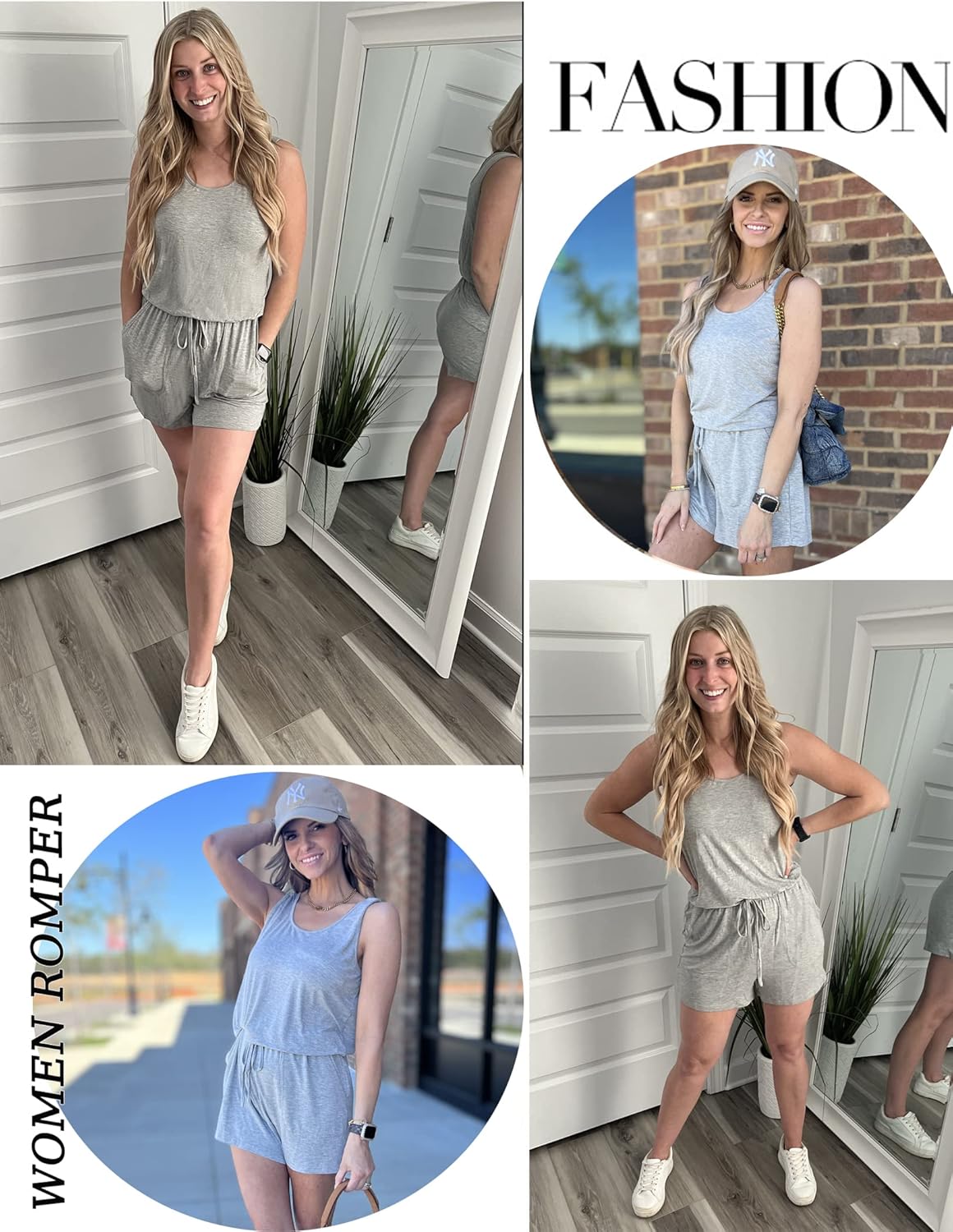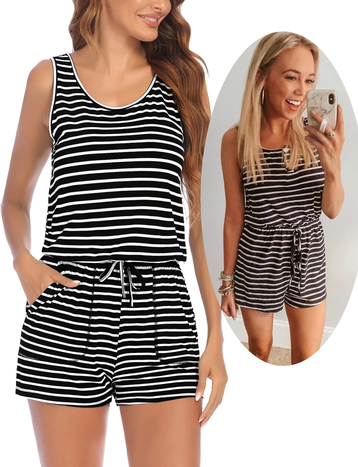 • ADOME Rompers for Women Summer Sleeveless Scoop Neck Tank Top Casual Short Jumpsuit Rompers with Pockets