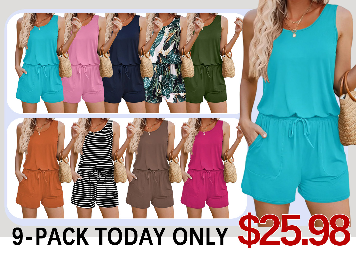 Click the button: 🔥9 PACK ONLY $25.95 (Includes 9 colors) to get 9 Women's Summer Casual Suits in the colors shown!