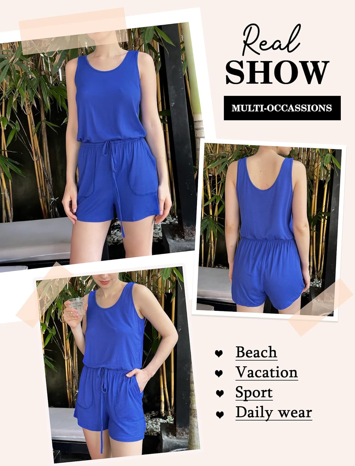 The short romper is so easy to dress up or down for any occasion.Such as Beach, Home, Travel, Vacation, Work, Sportn, Daily wear etc. Also, you can wear it as pajamas or workout yoga activewear!