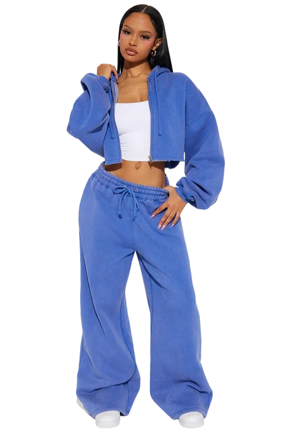 Stay cozy and stylish in this ultra-soft fleece pant set, designed for effortless comfort and a relaxed fit. Perfect for lounging, running errands, or casual outings, this two-piece ensemble combines functionality with a trendy cropped wide-leg silhouette. The vibrant blue hue adds a pop of color to your cool-weather wardrobe!