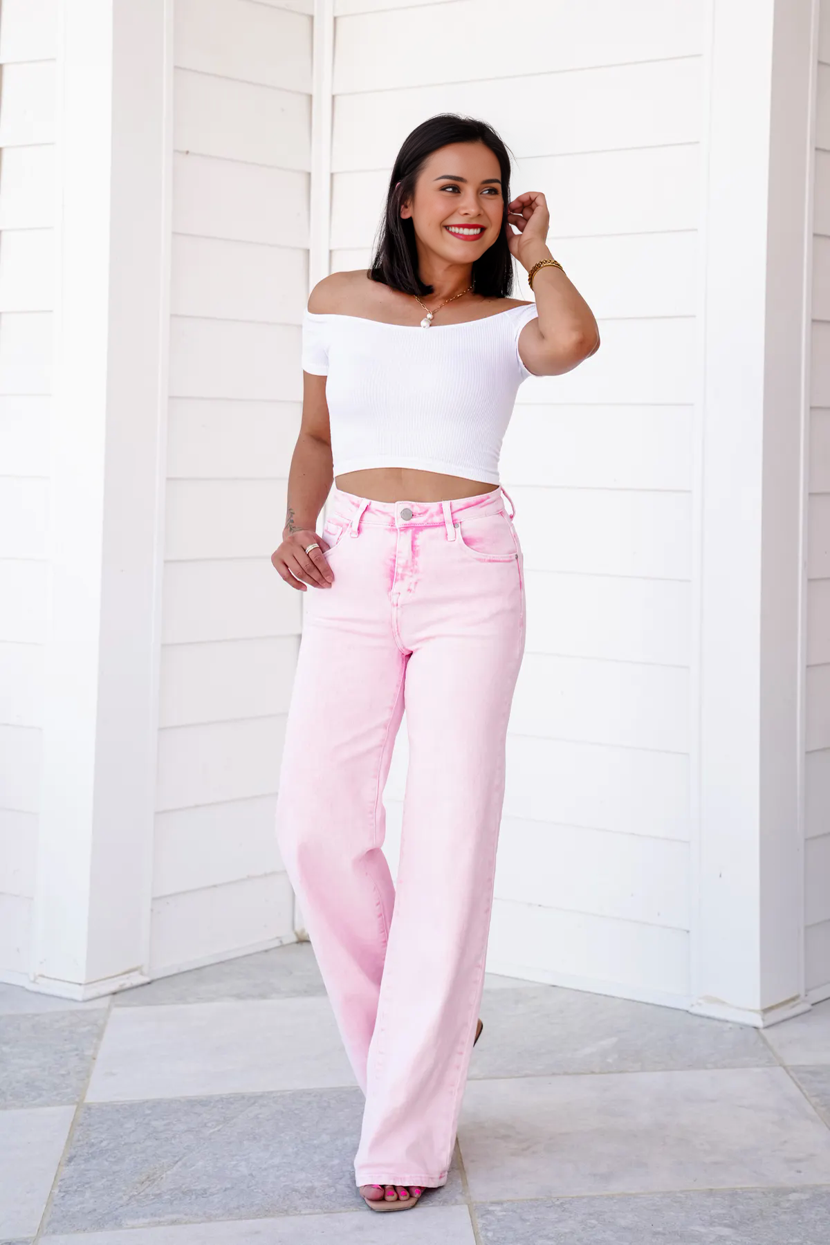 These jeans are perfect for spring, girls! High Rise (check), wide leg (check), tummy control... CHECK!! These jeans are the perfect blend of comfort and style!