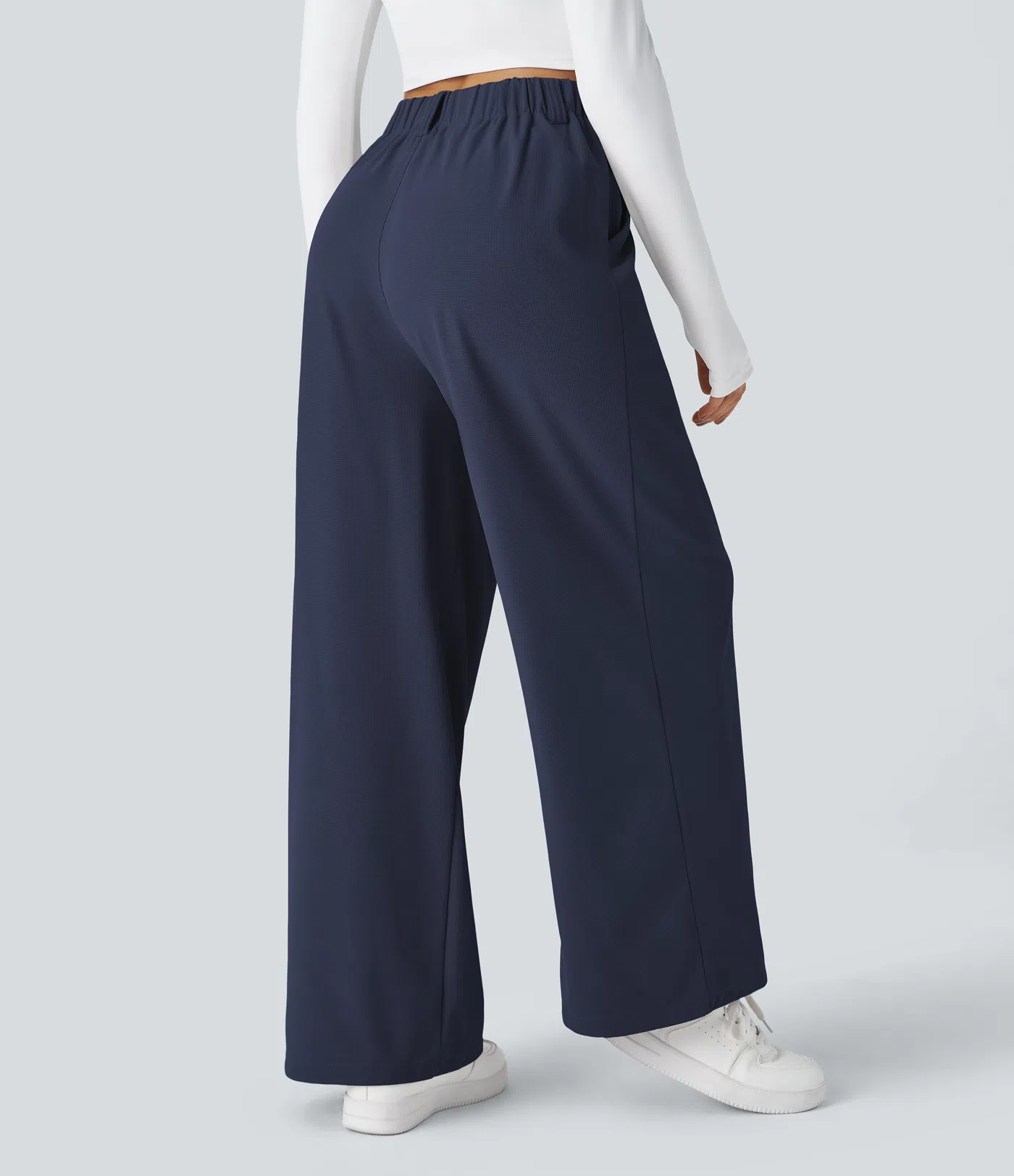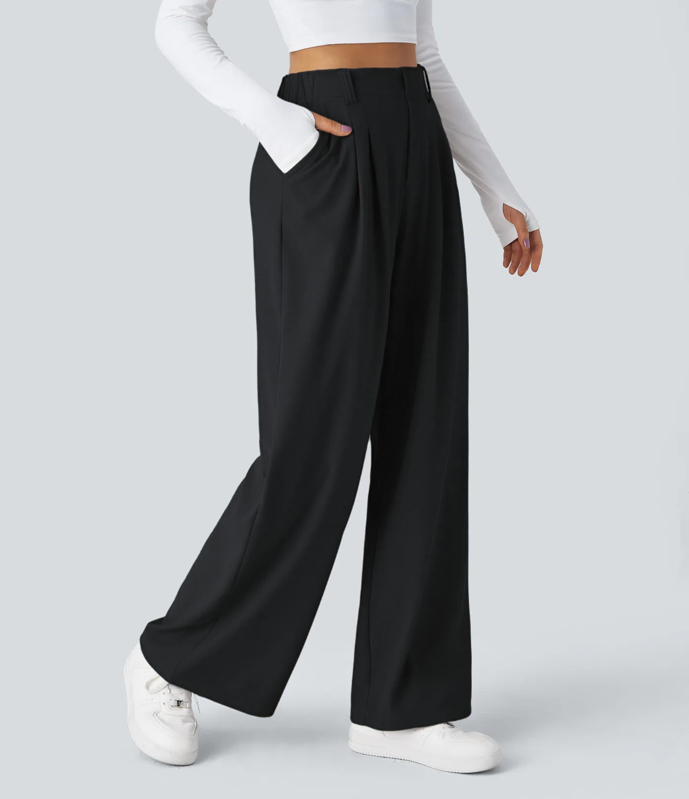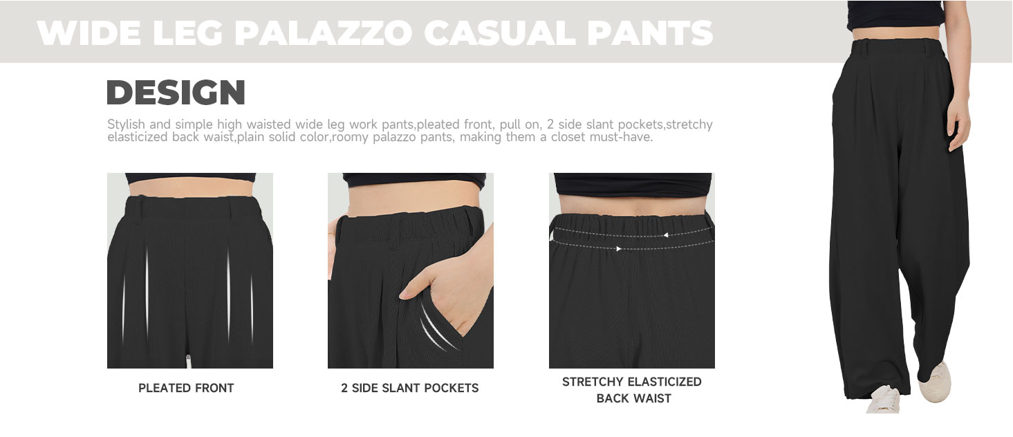 - Wide leg style gives a timeless look, while providing comfortable wear.