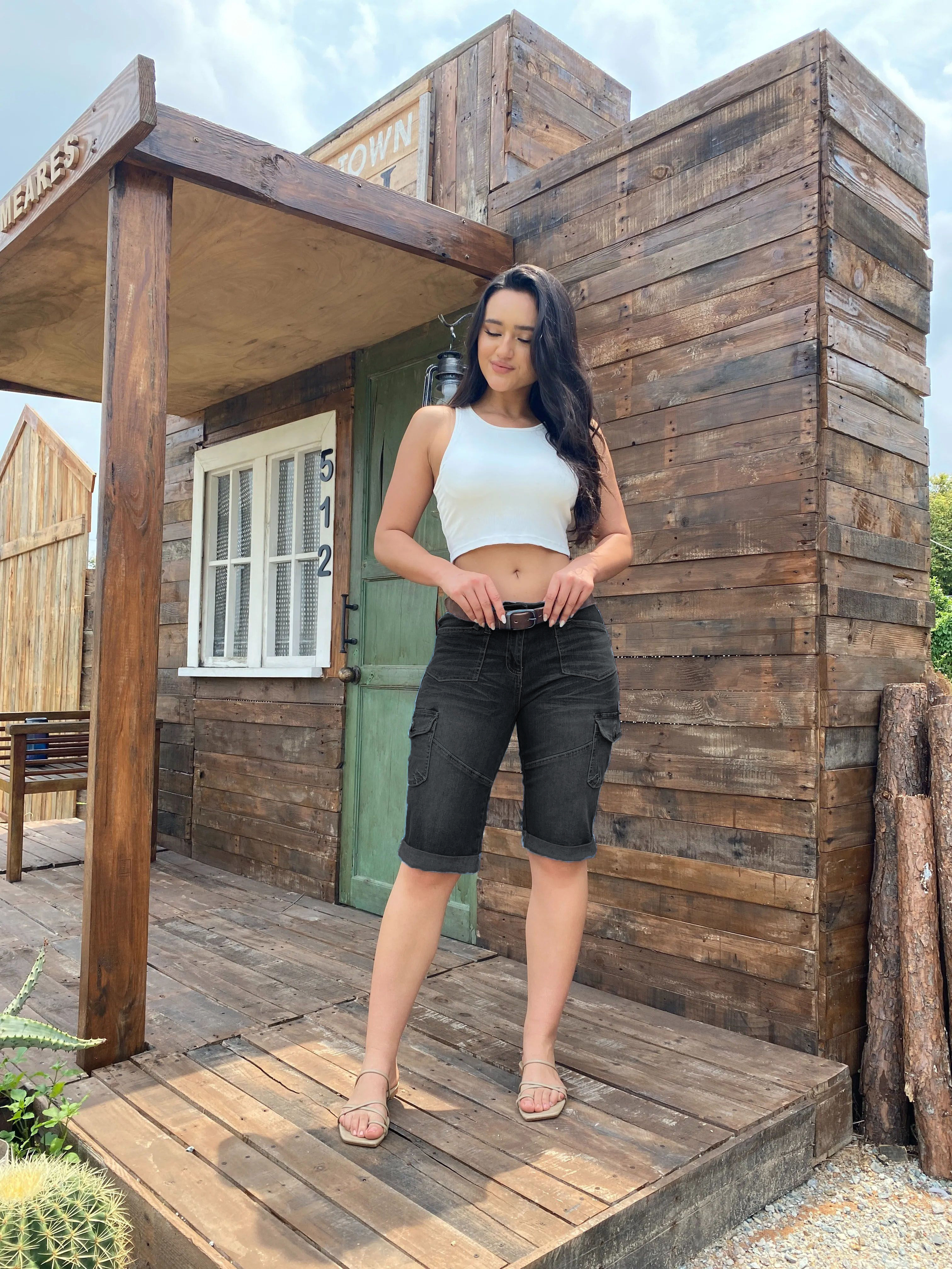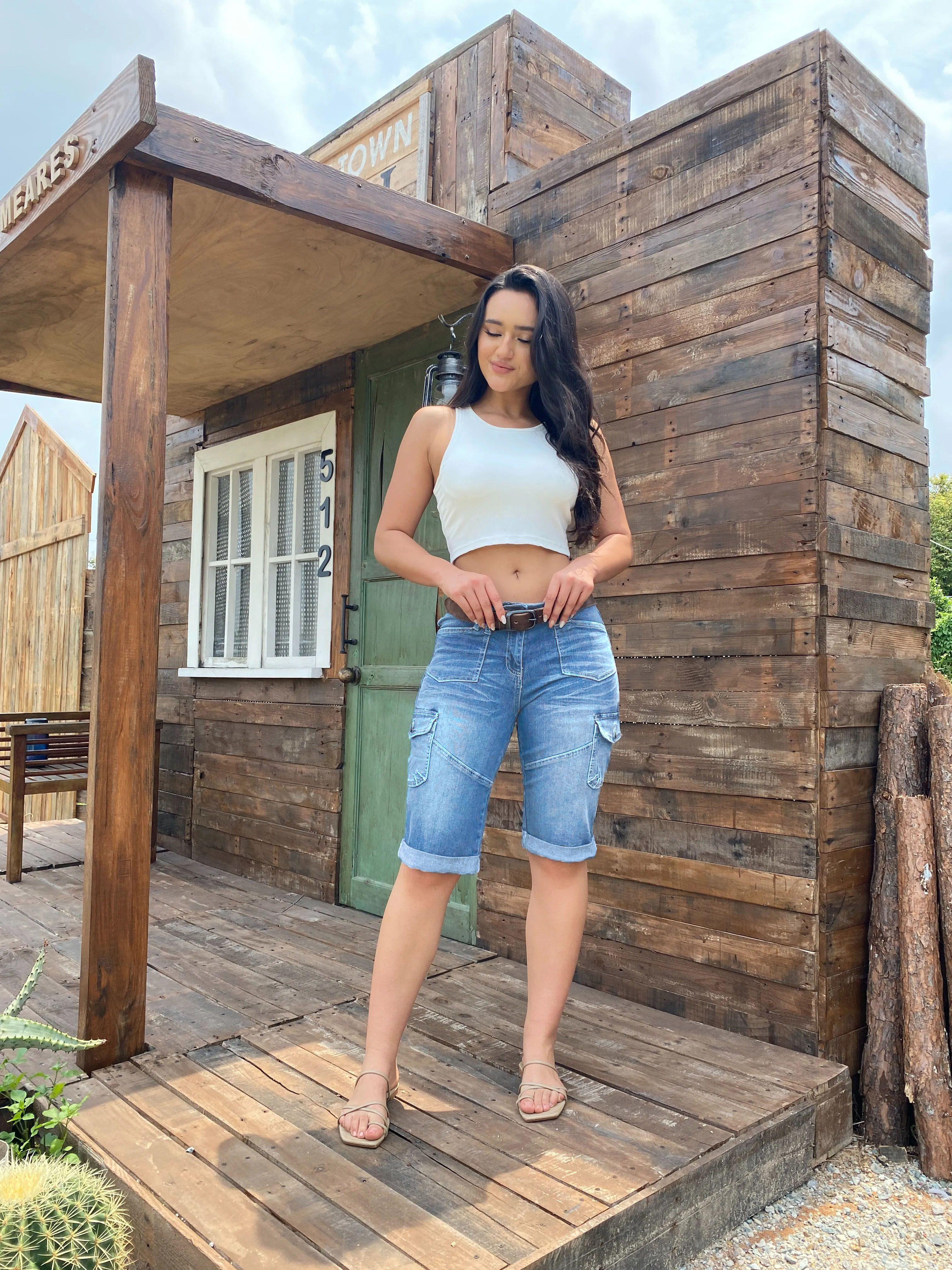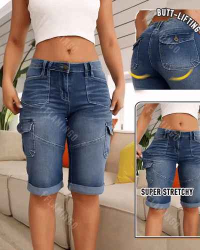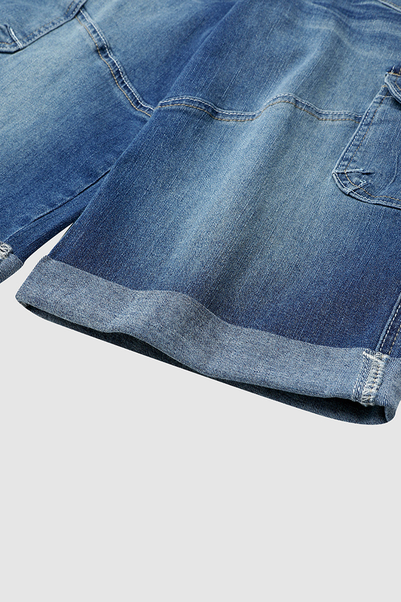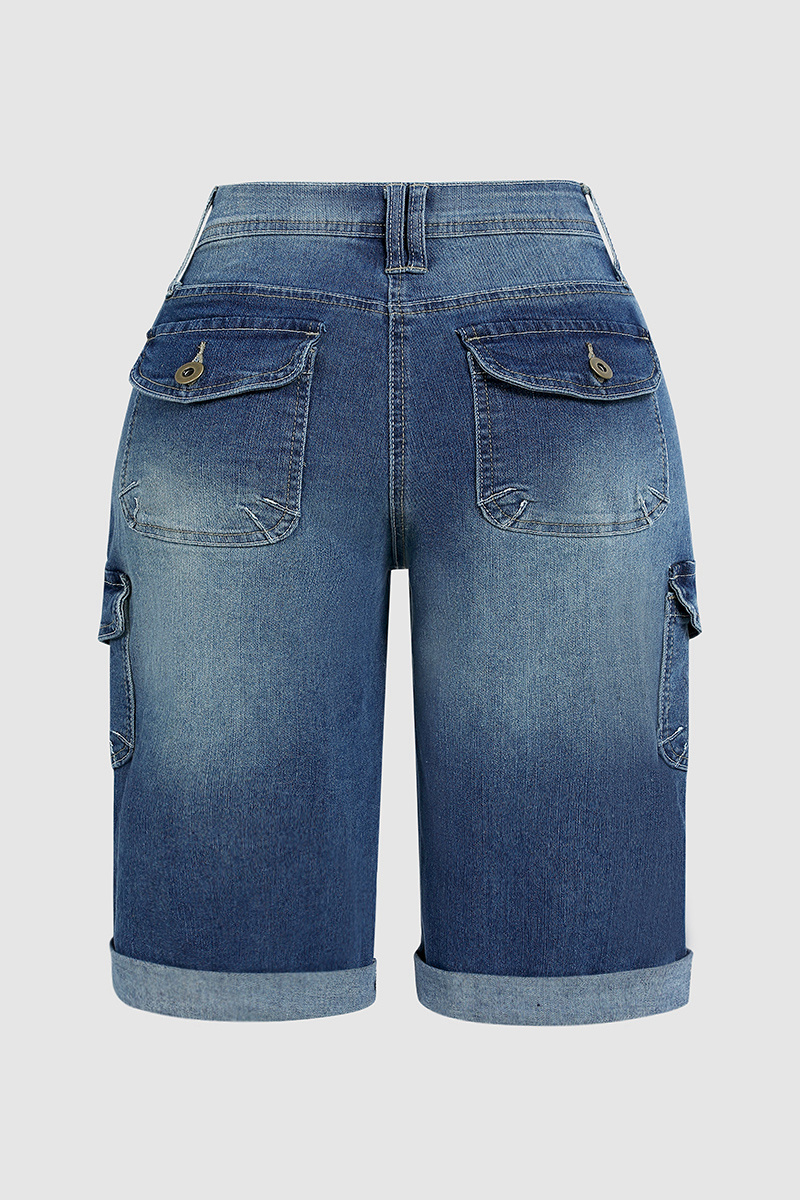 Flap Pocket Roll Hem Denim Bermuda Shorts Without Belt