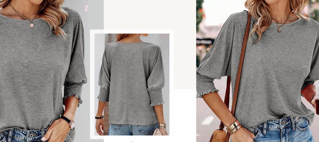 Details: Warm up or cool down with this essential 3/4 sleeve t shirts, featured in an loose fit and Pleated sleeve design with sew seaming front for a lived-in look.
