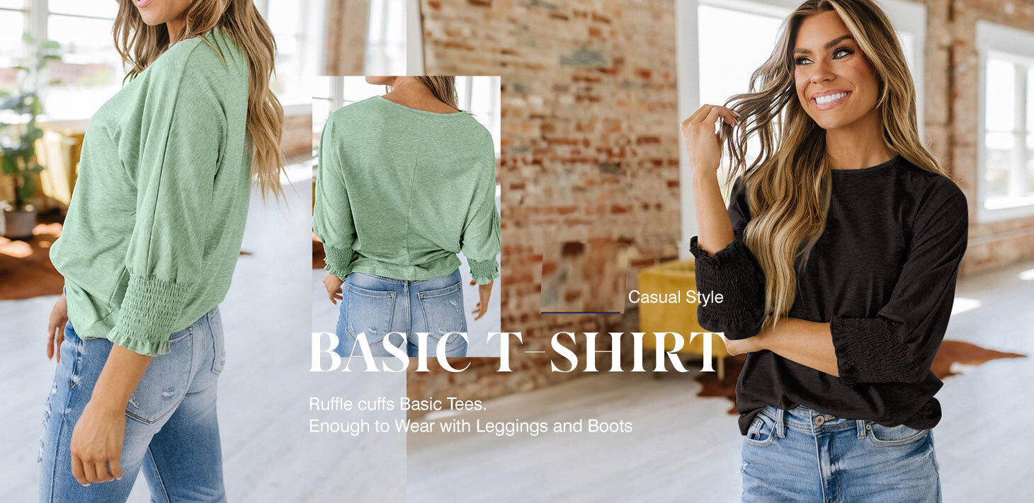 Contents: Super soft and comfy fabric, skin-friendly and breathable. Womens tops dressy casual, round neck cute lightweight tops,loose fit basic tees
