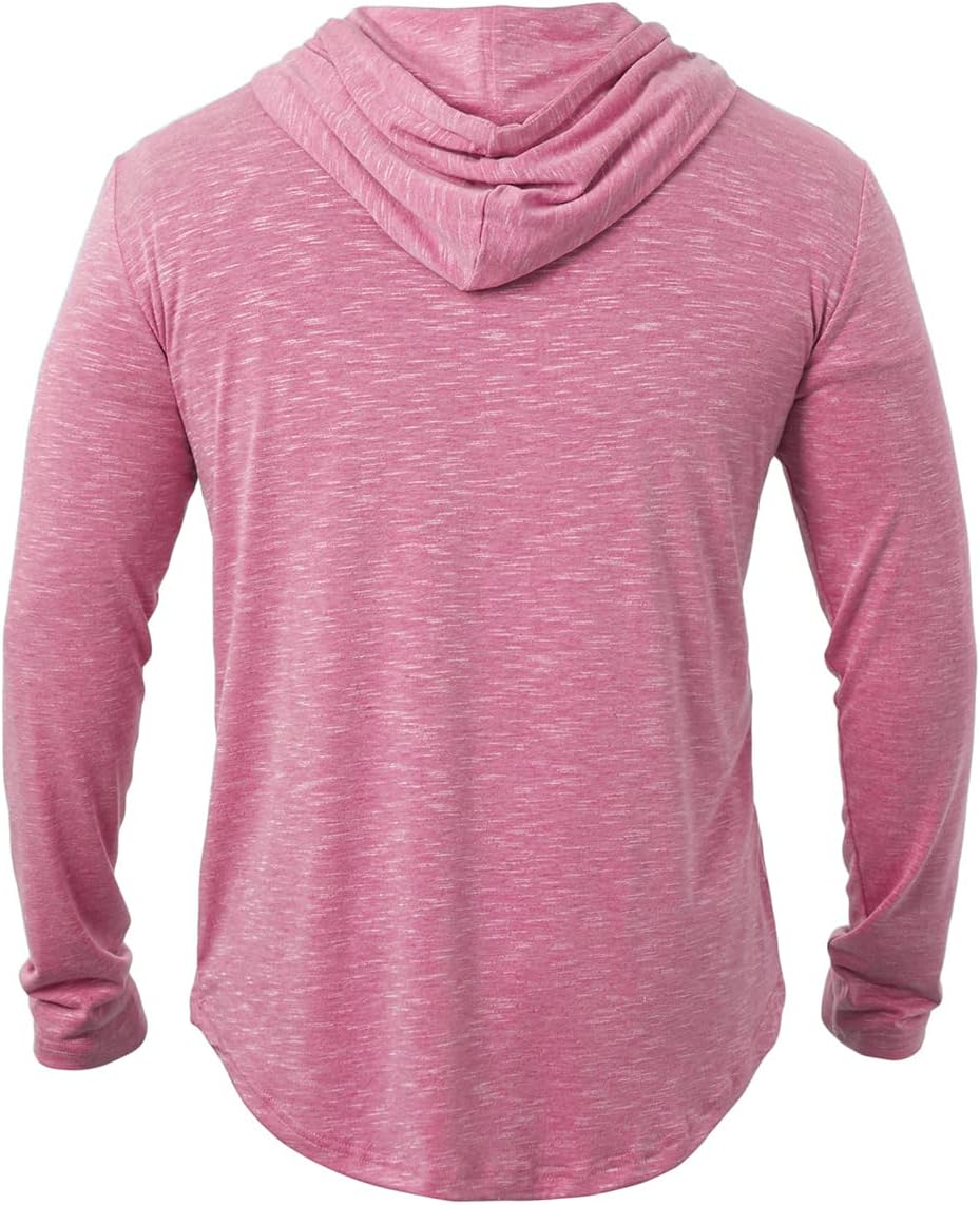 Men's lightweight hooded shirt long sleeves, with adjustable drawstring hood.