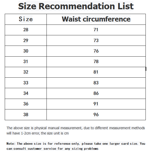 Note: Due to different manual measurement methods, there is an error of 1-2cm, which is reasonable .The above size is for reference only, please take one larger card size. You can consult customer service for any sizing problems