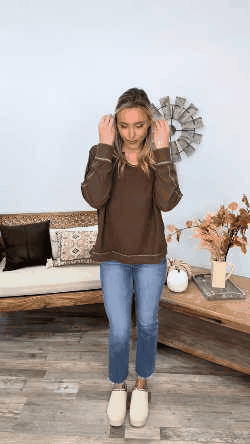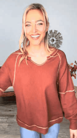 Notched Neck With Exposed Seams Knit Top