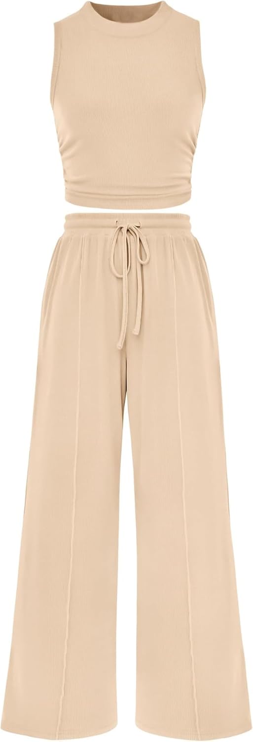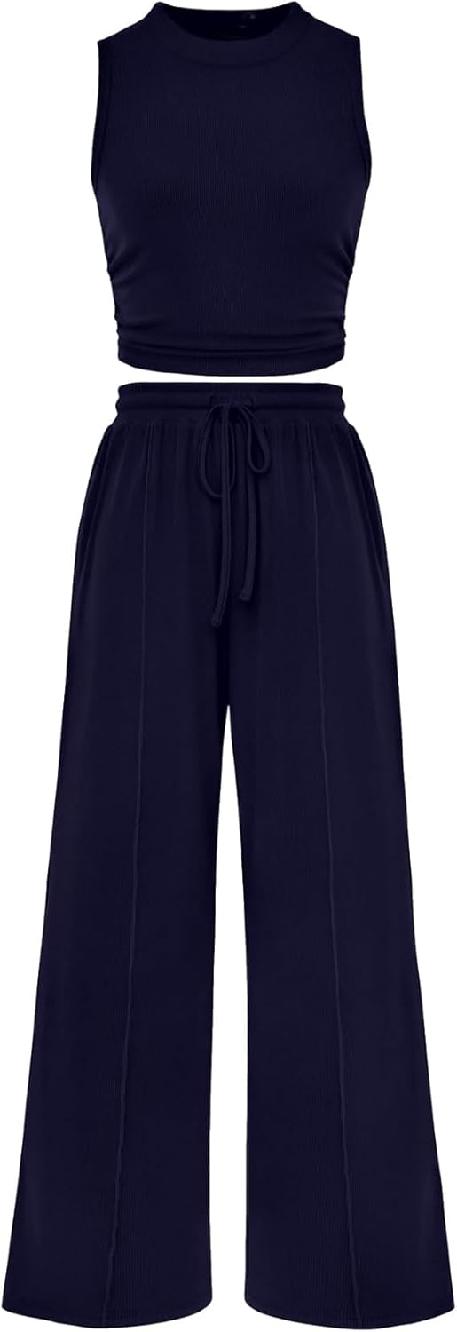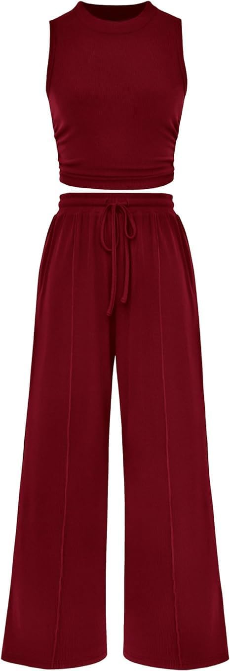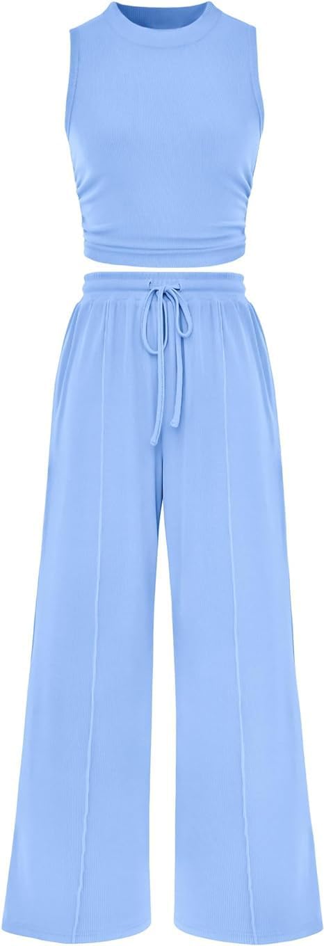 BTFBM Women's Crop Top Wide Leg Pants With Pockets