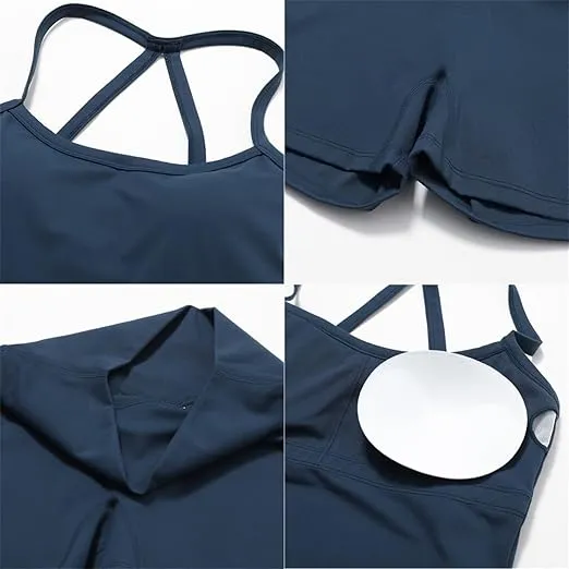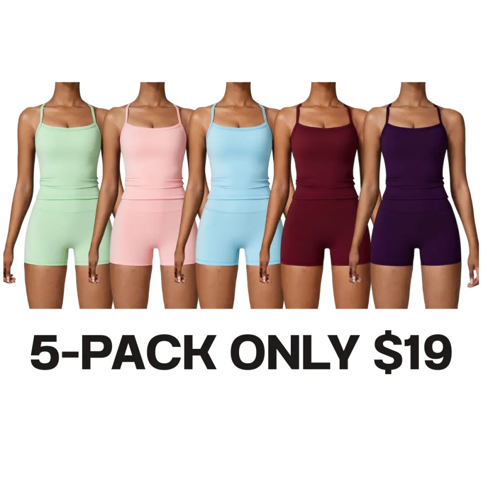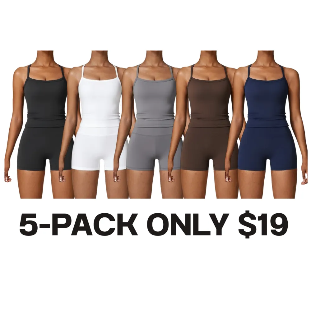 • Women's 2-Piece Backless Sports Set: Sleeveless Cami & High-Waist Shorts