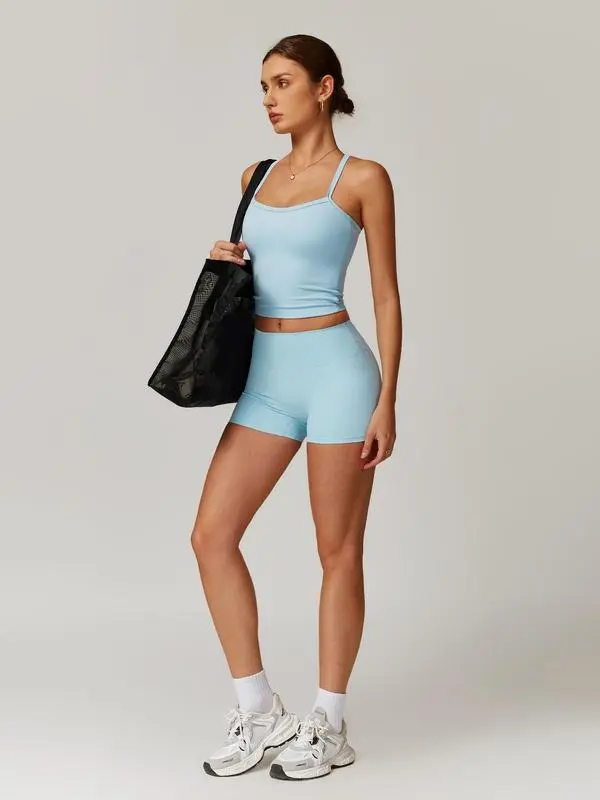 Sleeveless Freedom】 Sleeveless spaghetti strap crop top allows unrestricted movement, ideal for hot, active days.