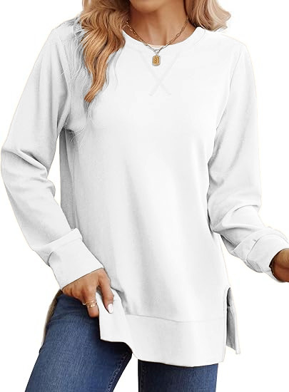 Loose Casual Style,Side Split Long Sweatshirt. Basic and stylish tunic tops, A Must-Have Womens Tops in Your Wardrobe.