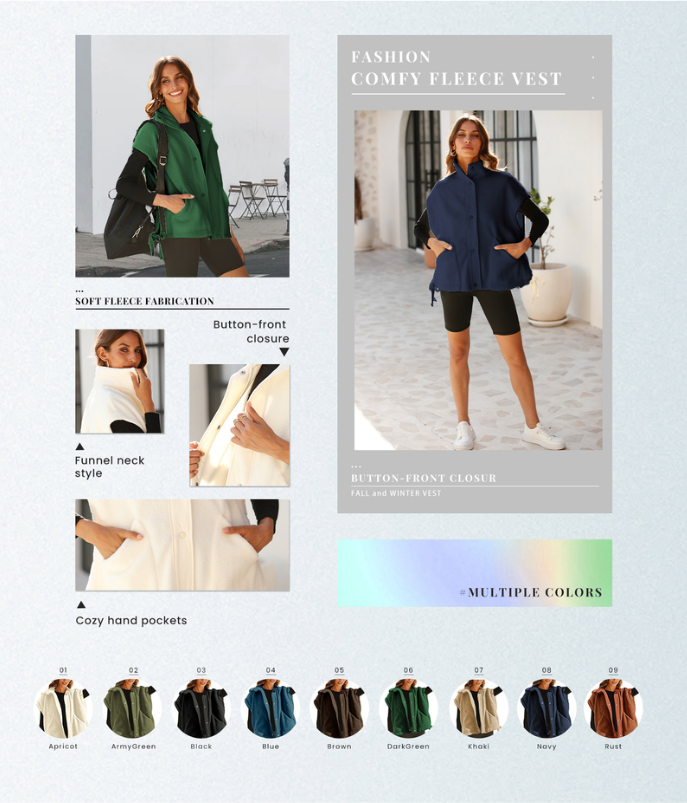 8-Piece Complete Collection】Set includes eight premium wool blend fleece vests in versatile colors, providing complete layering options for your cold-weather wardrobe