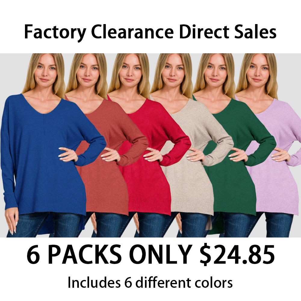 Hi-Low Hem V-Neck Center Seam Sweater (Multiple Colors)