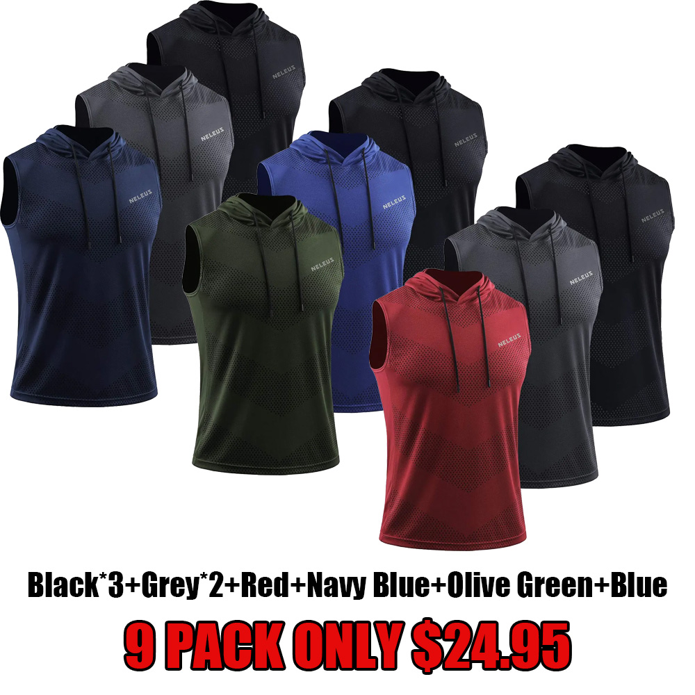 Men's Workout Tank Tops 3 Pack Sleeveless Running Shirts with Hoodie