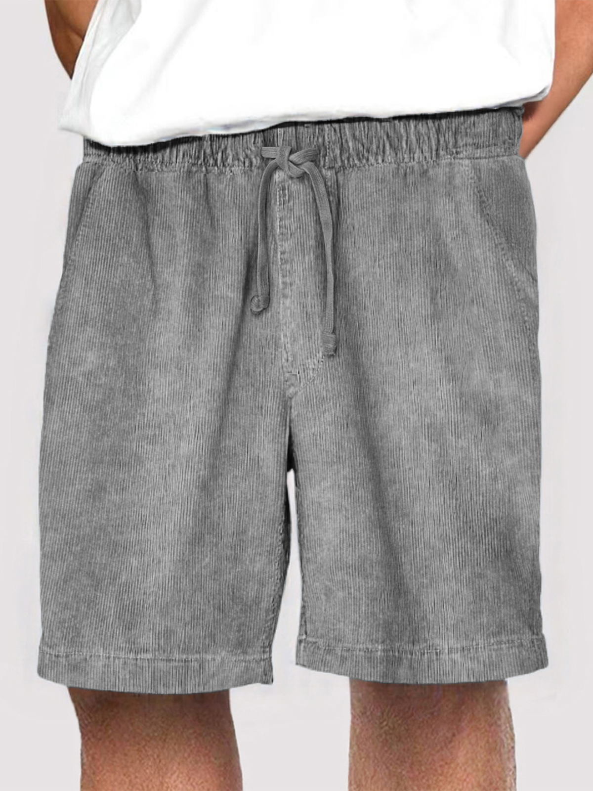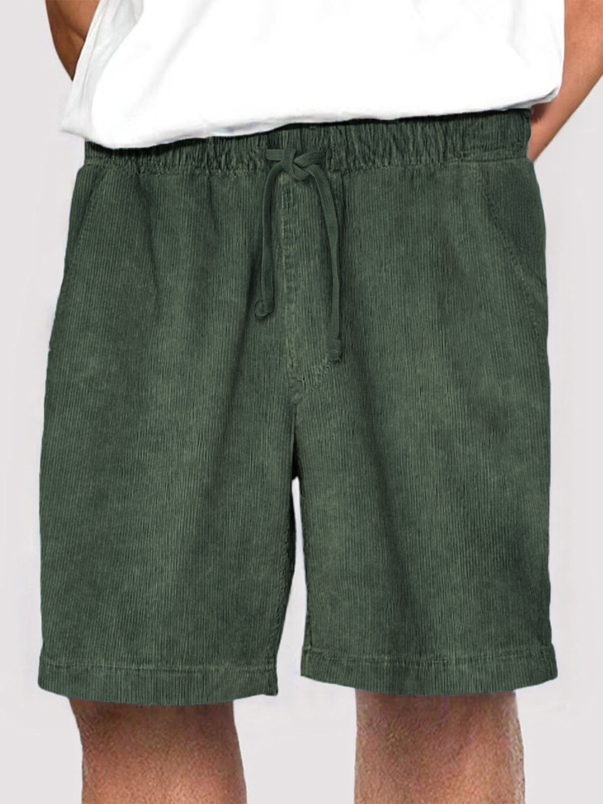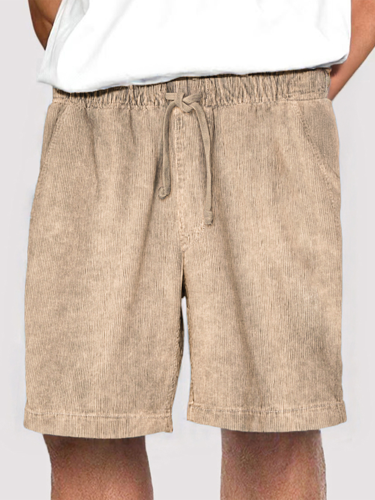 • Men's Fashion Corduroy Casual Everyday Elastic Waist Drawstring Shorts With Side Pockets