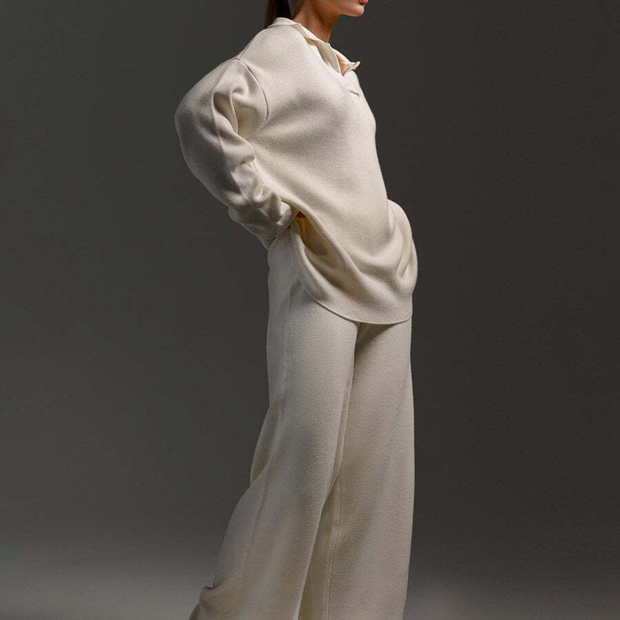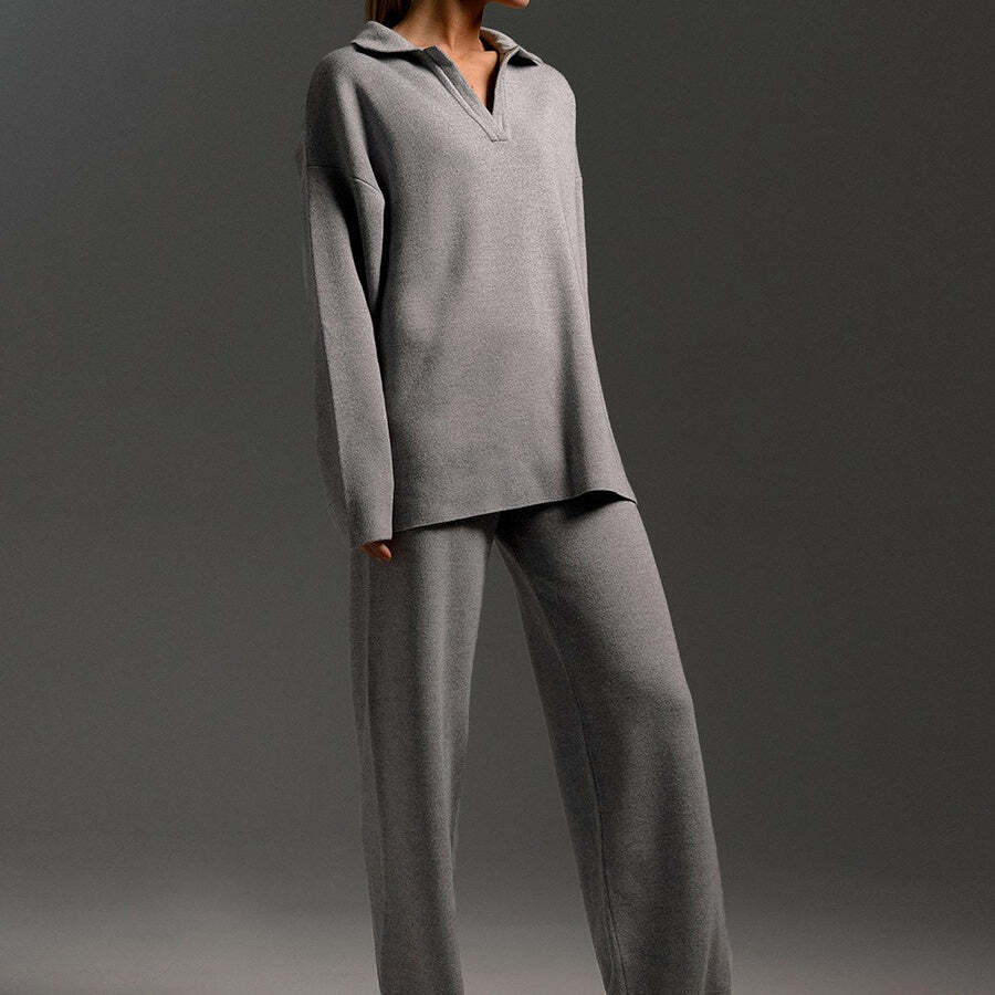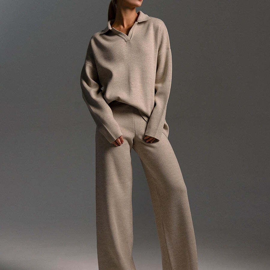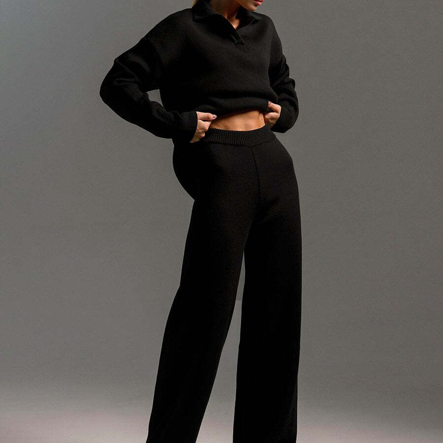 Package Includes: 1 * Knitted Top and Wide Leg Pants Two Piece Set
