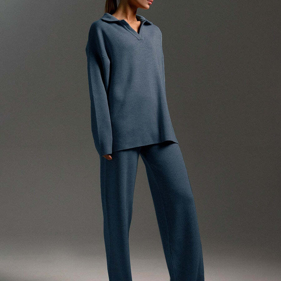 VERSATILE KNIT 2 PIECE SET: This stylish knit set includes a chic V-neck top and wide leg pants, perfect for a variety of occasions. Dress it up for a night out or keep it casual for everyday wear.