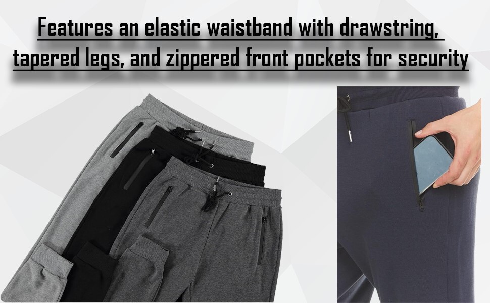 * Modern and Casual Colors: Our sweatpants for men come in a variety of attractive color choices, being easy to mix and match with your favorite t-shirt and sneakers! Each pack includes 3 pairs of sweatpants, choose from: black/heather gray/charcoal, black/navy/charcoal, black/heather/olive, black/sand/olive, black/black/black.