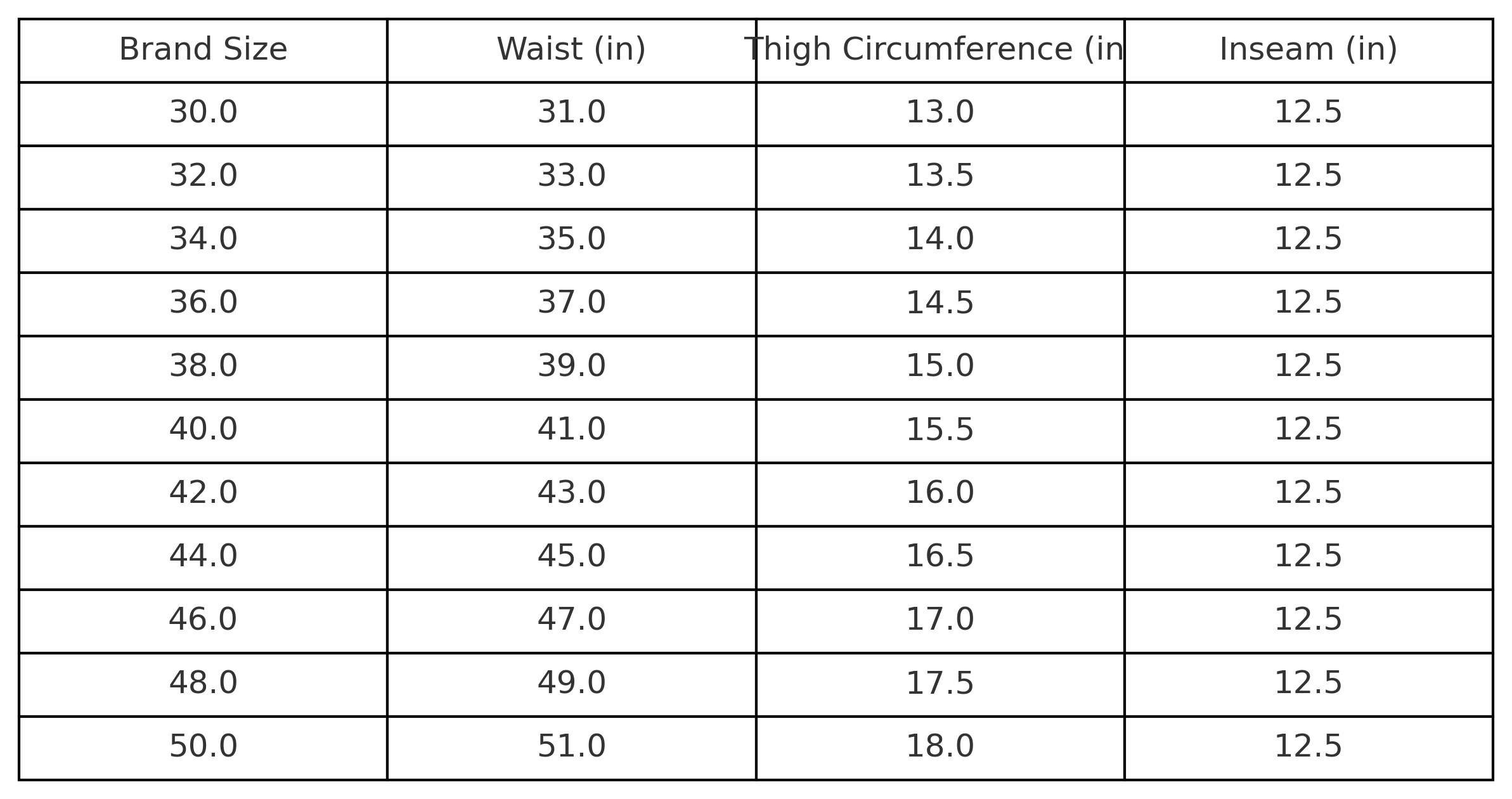 🩳Men's Shorts Size Chart (US)