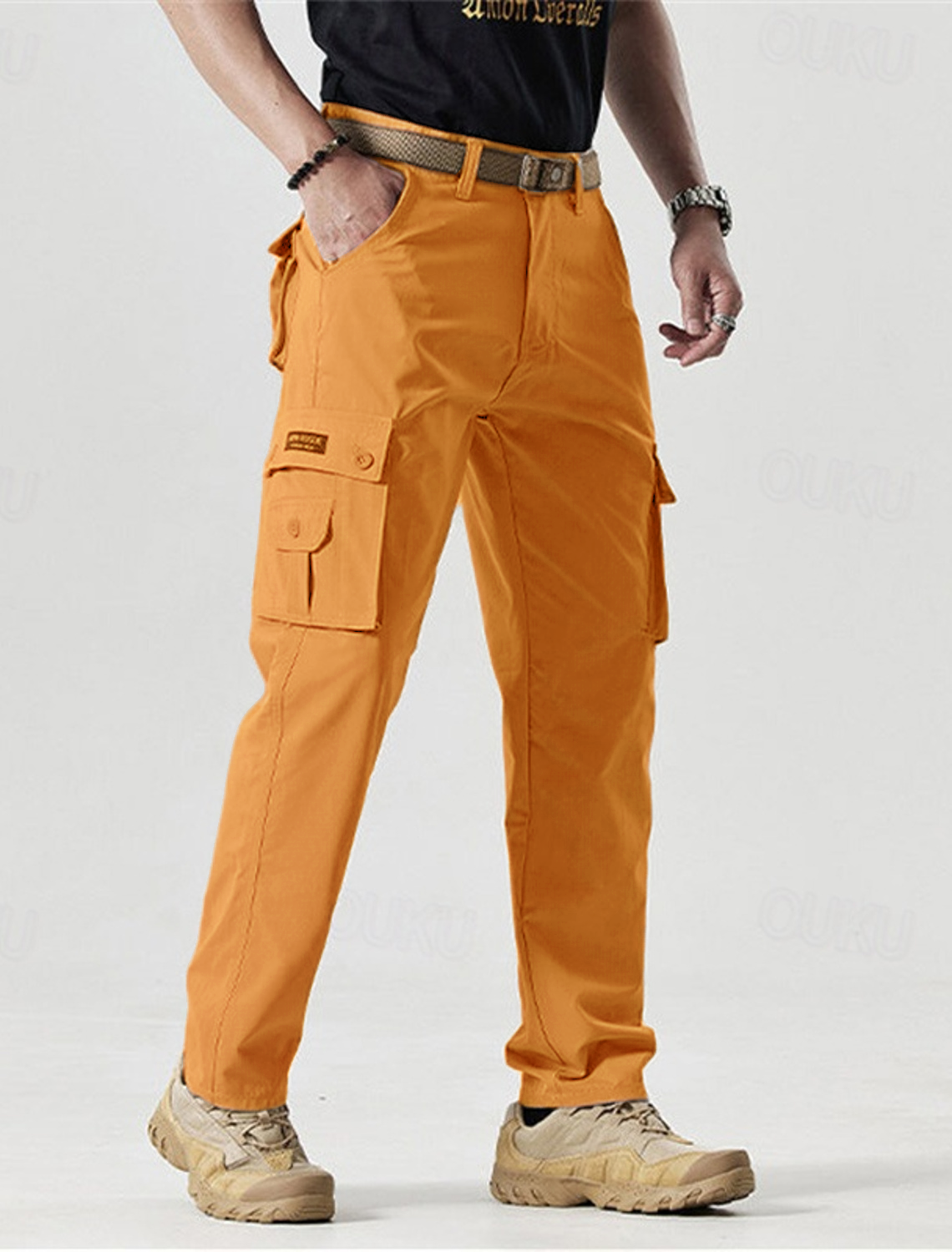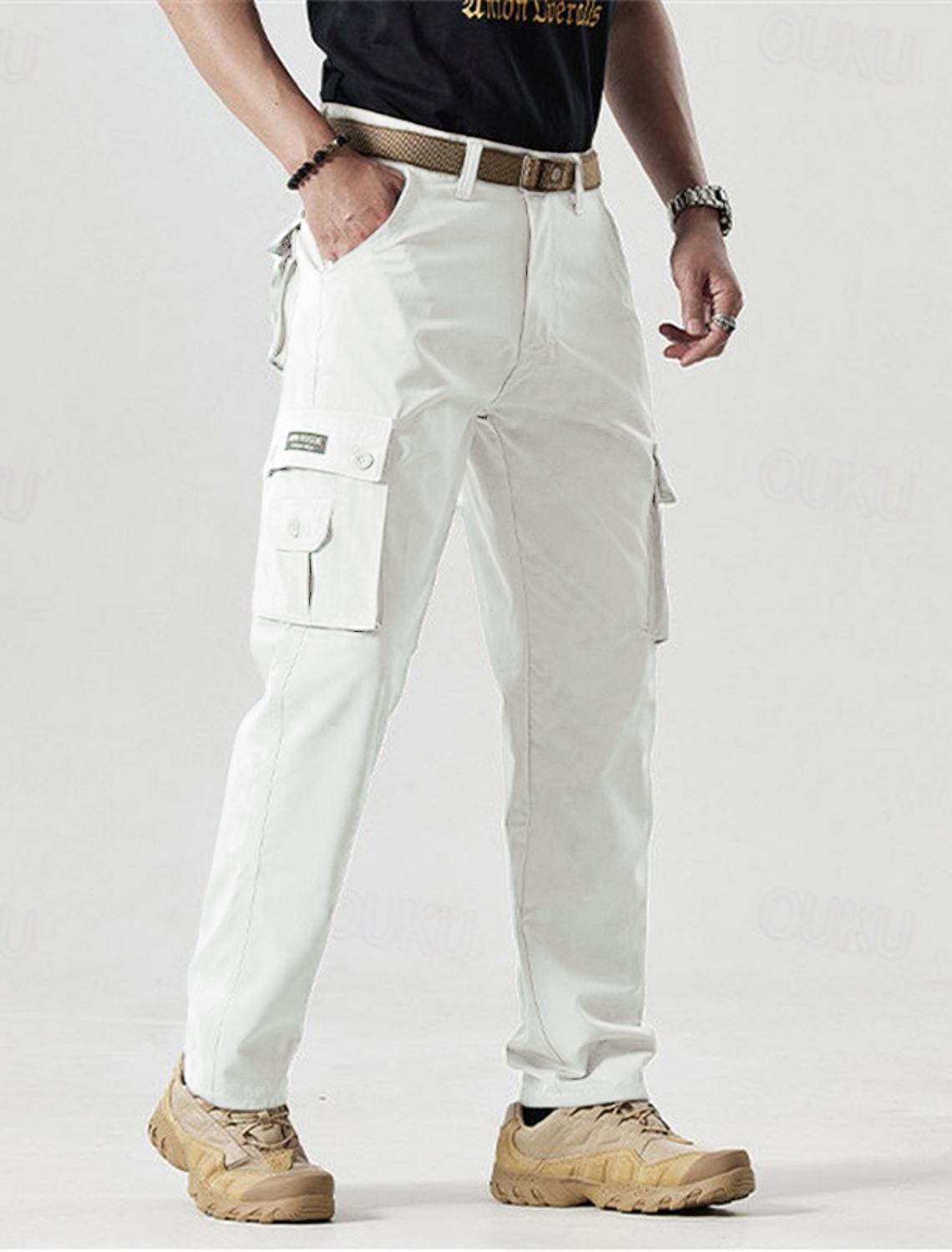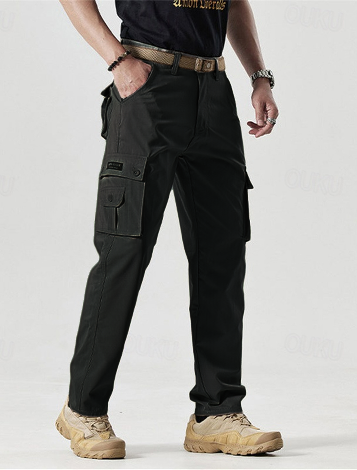 - Pockets: Multiple functional pockets, including two side cargo pockets, two front pockets, and two back pockets with reinforced stitching