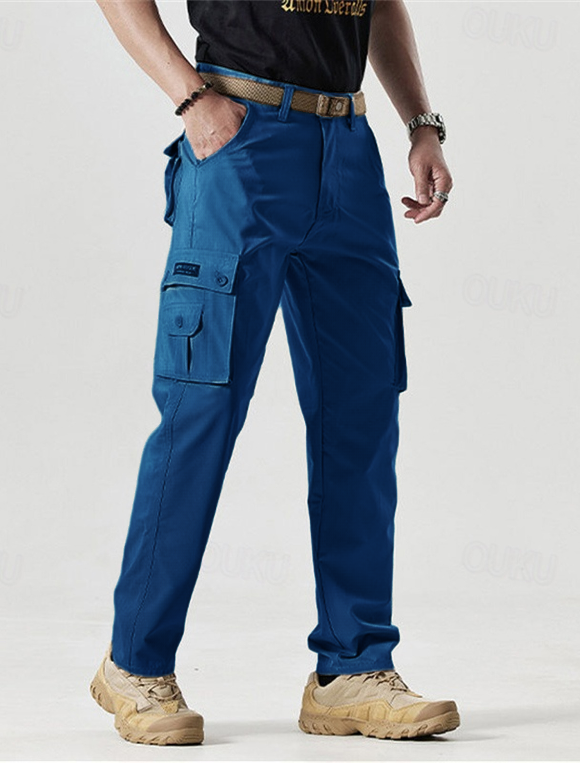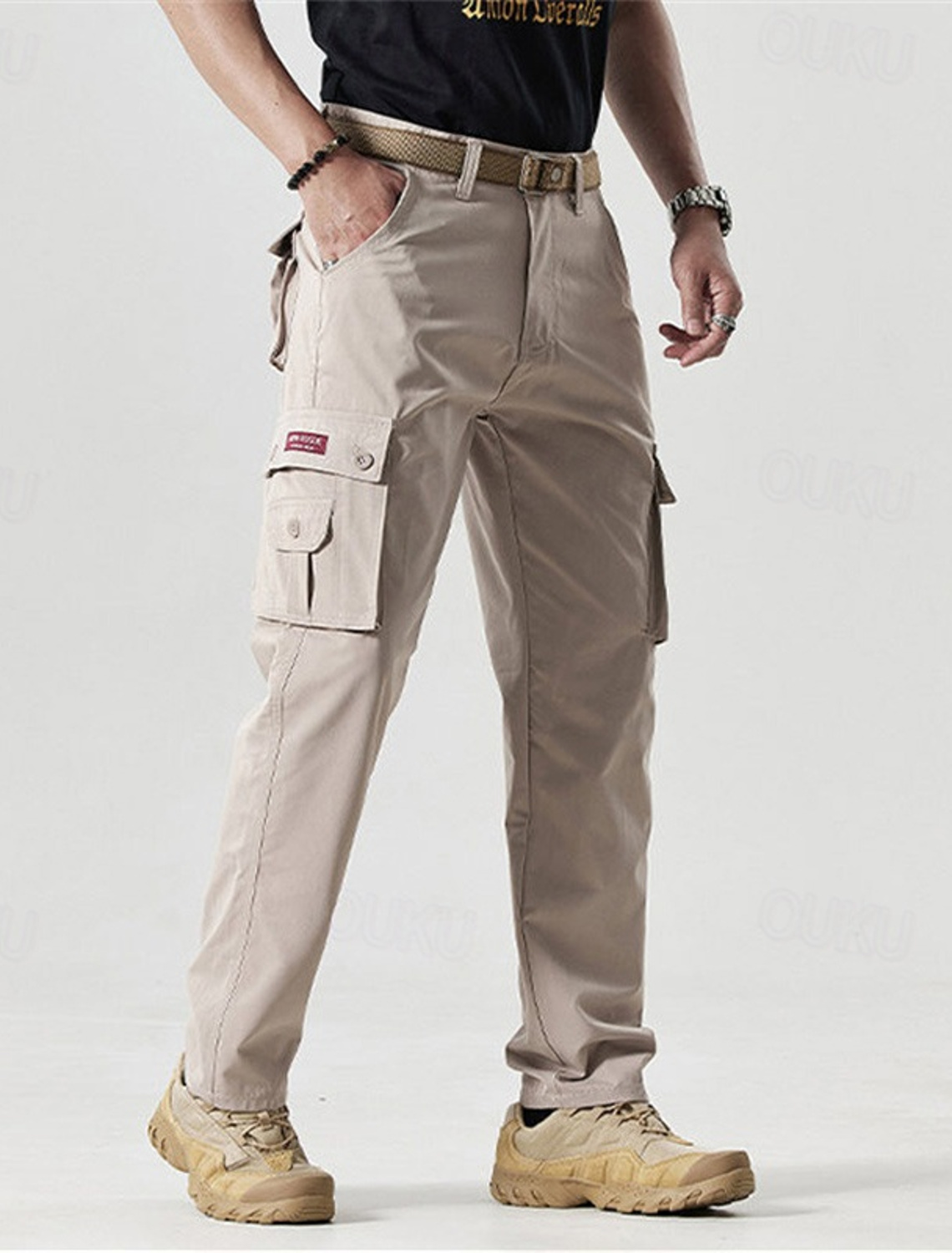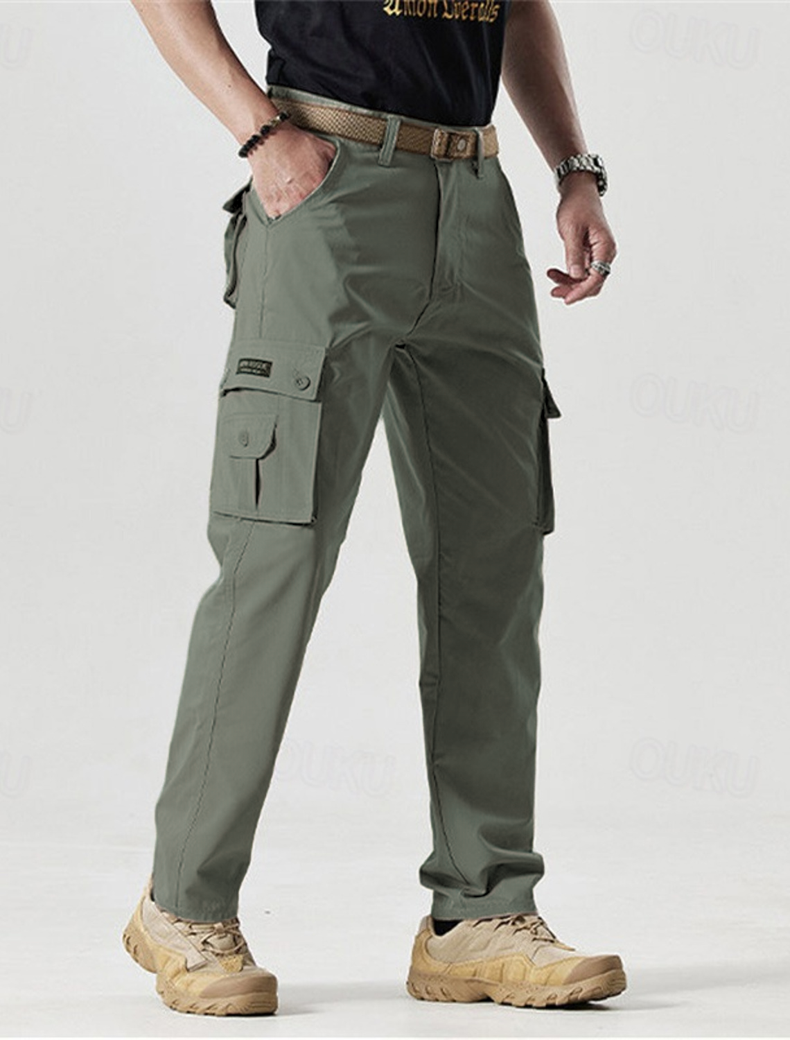 - Pockets: Multiple functional pockets, including two side cargo pockets, two front pockets, and two back pockets with reinforced stitching