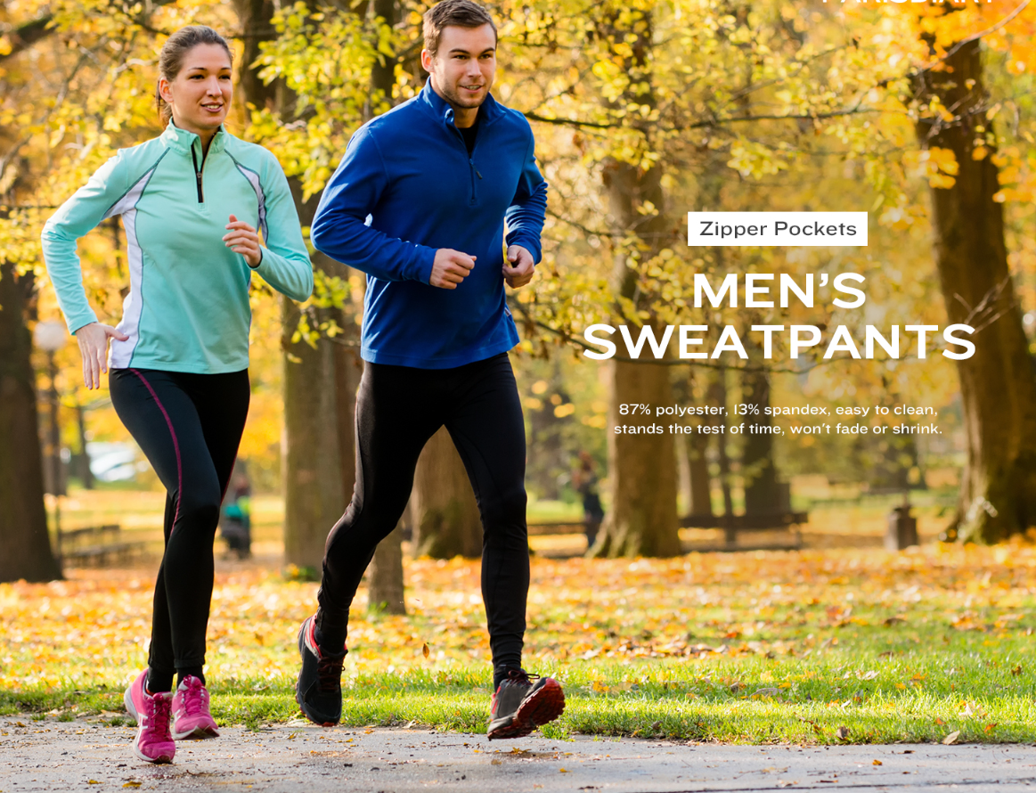 | Design | Zippered Pockets, Elastic Ankles |