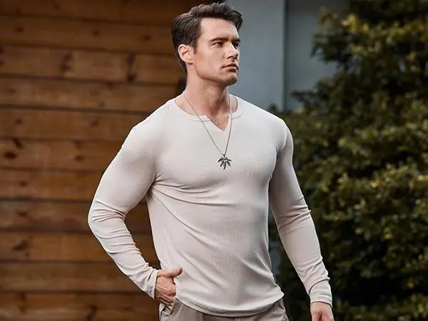 Men's V-Neck Long Sleeve Muscle Shirt