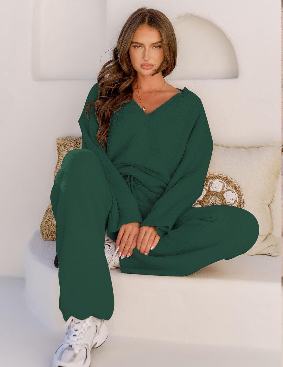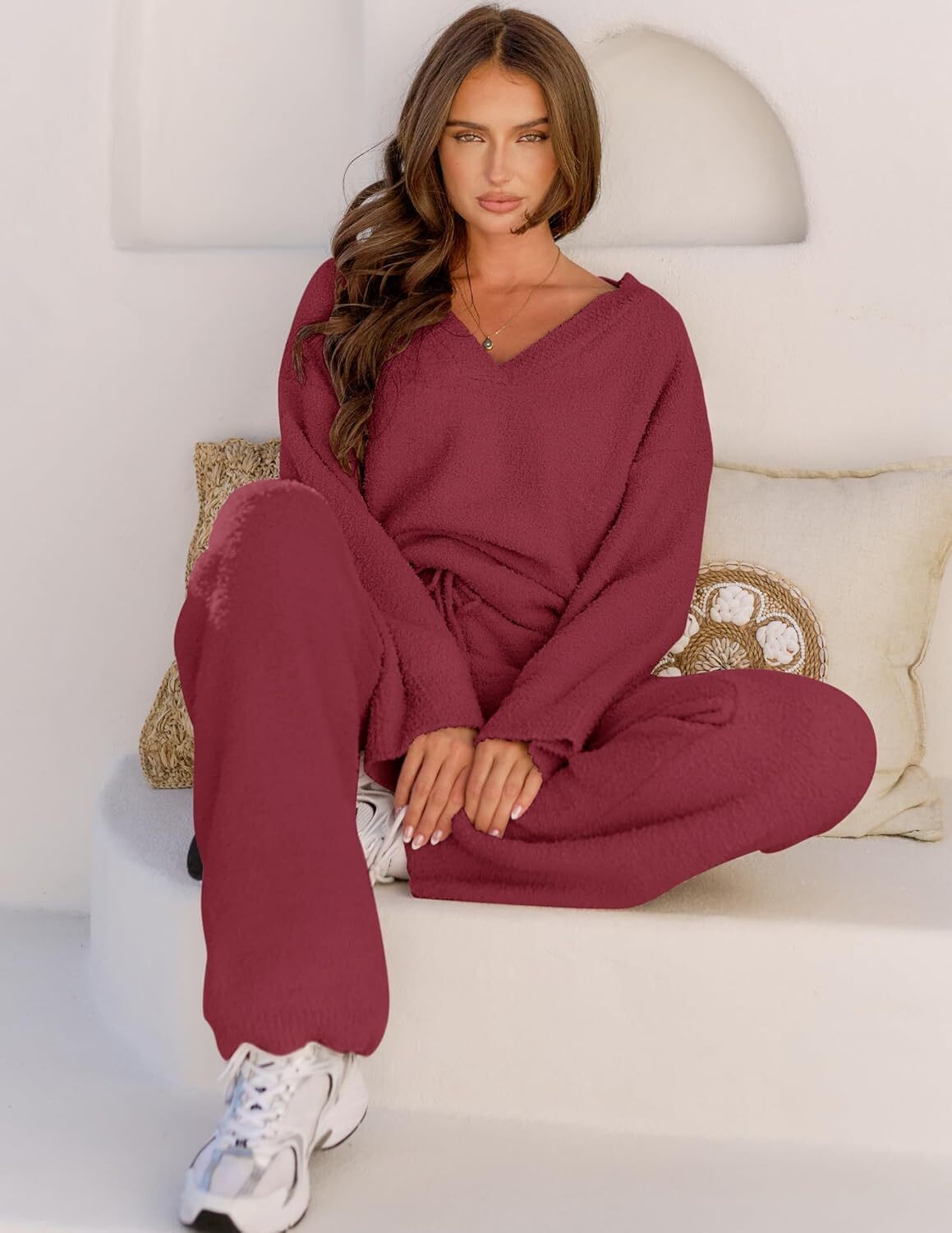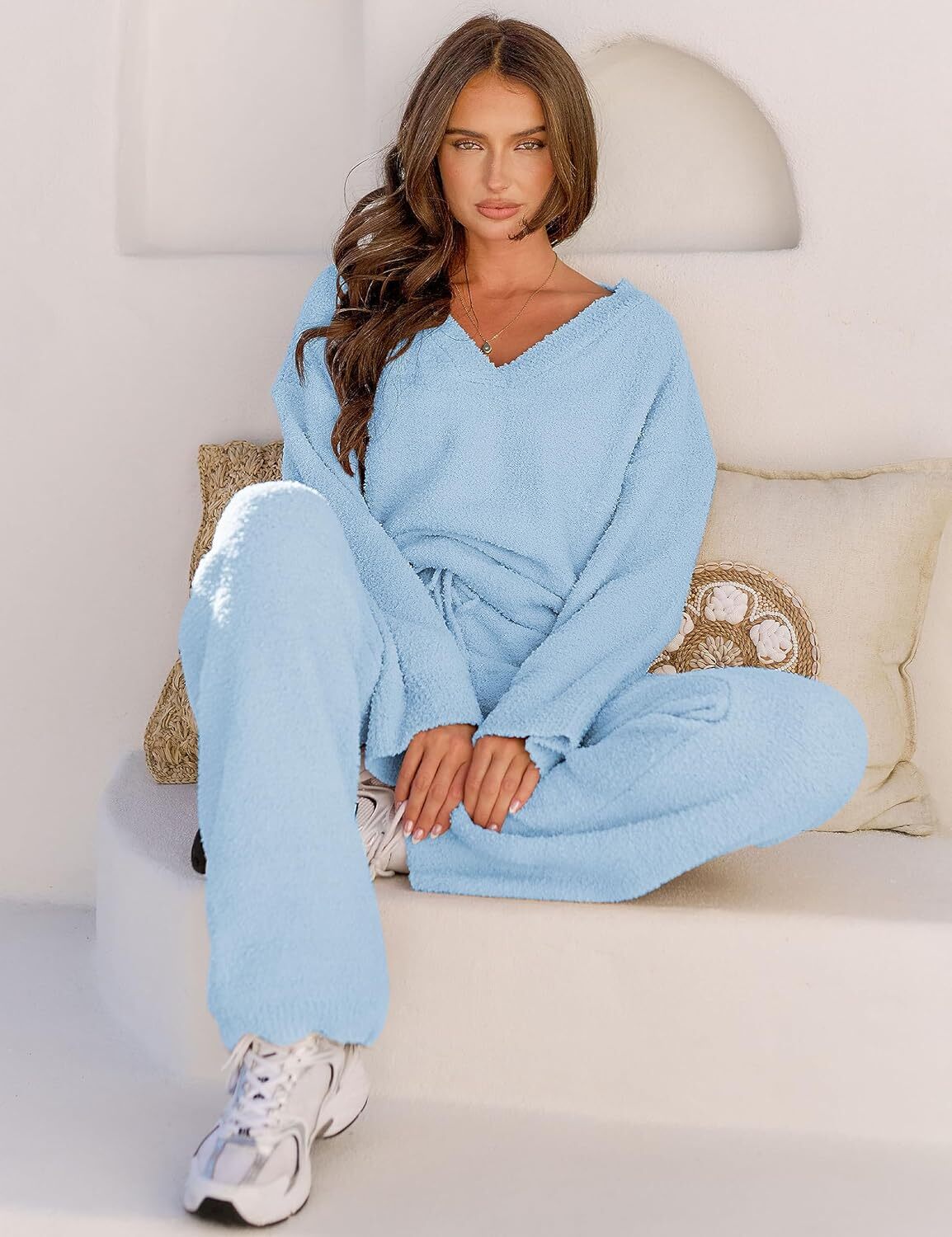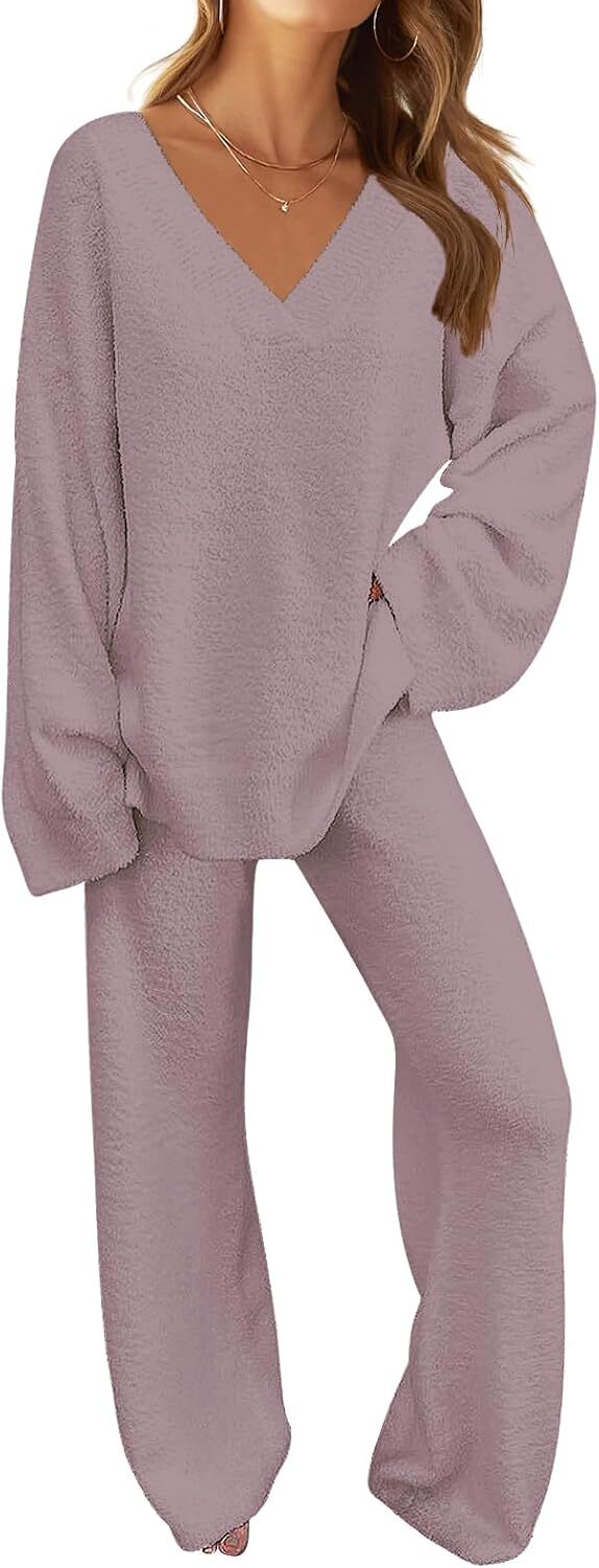 - The matching set is amazingly soft, and the fuzzy fabric is great for casual indoor or outdoor wear.