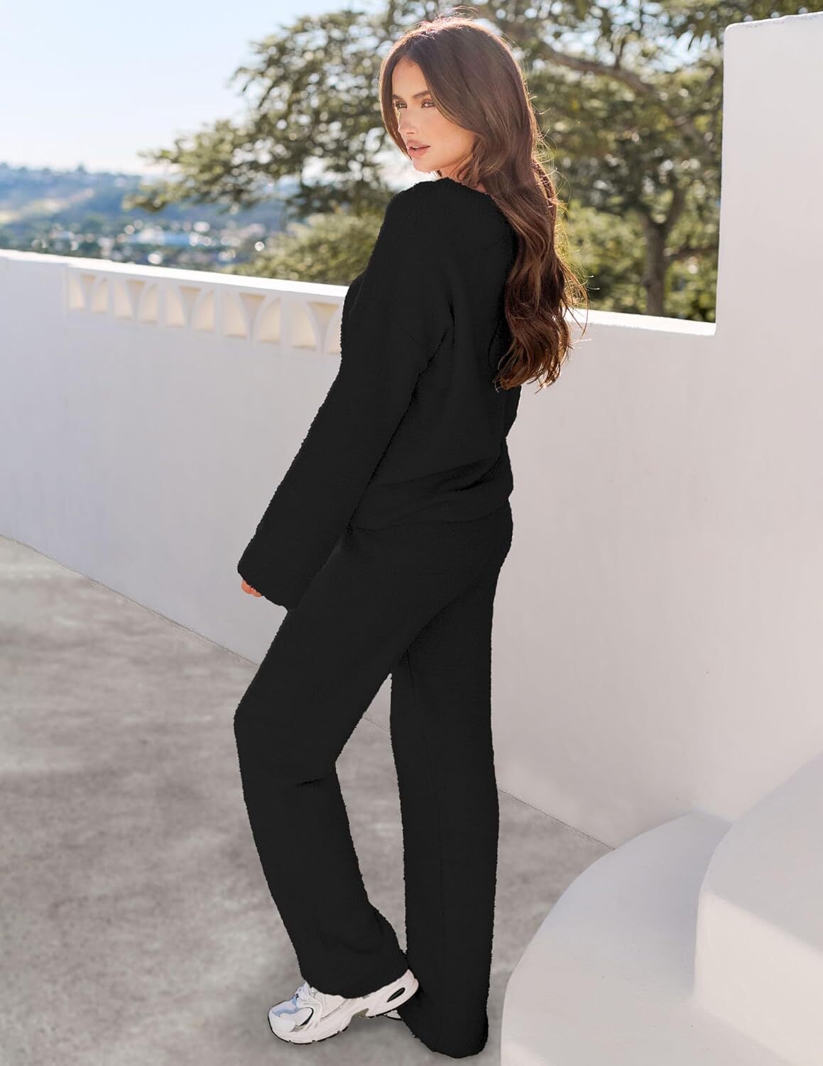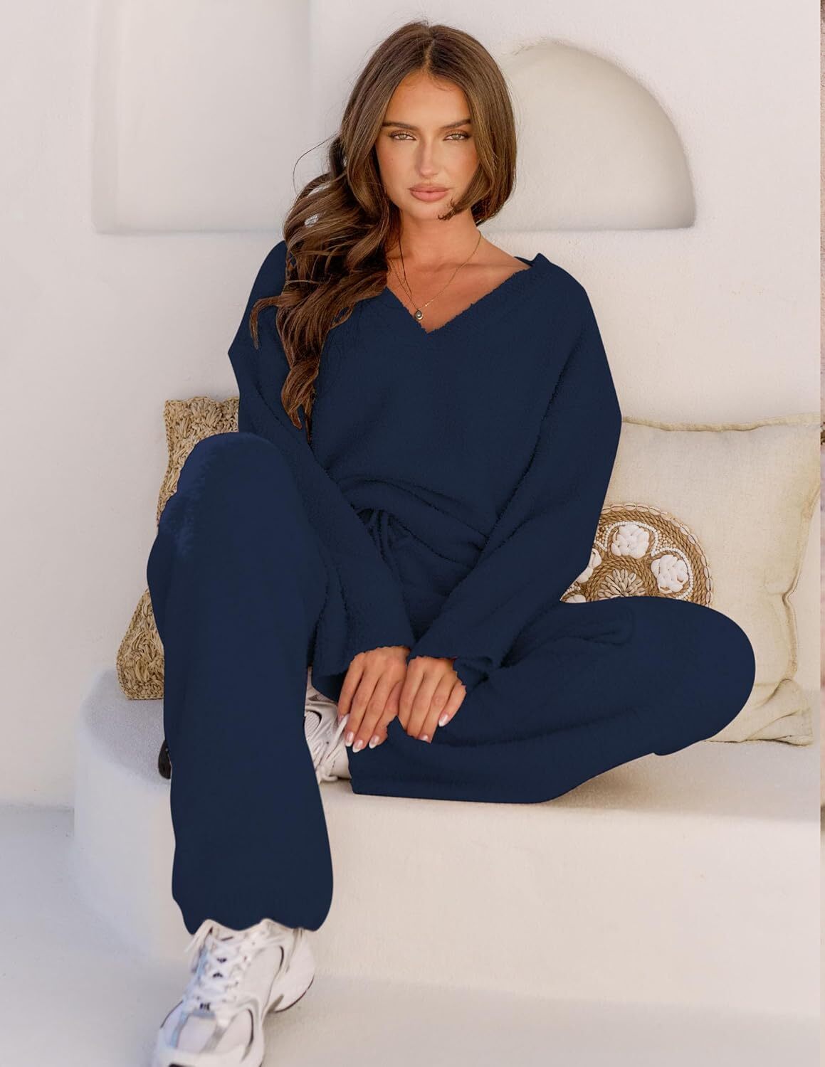 - This pullover sweater is fit and comfy, while the loose style and drop shoulder design give this loungewear set a relaxed style.