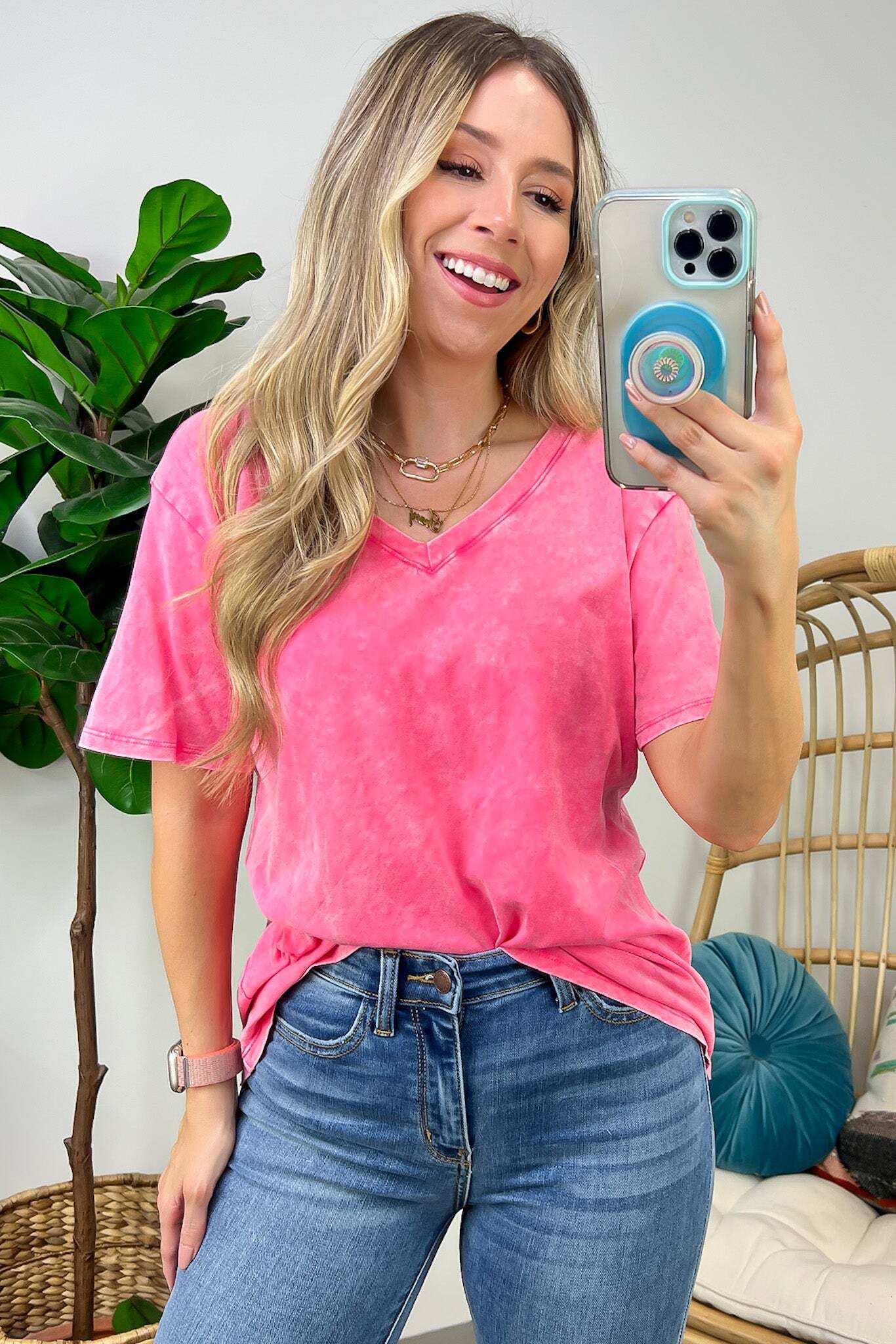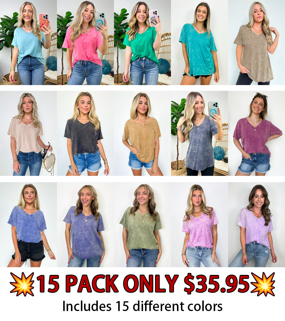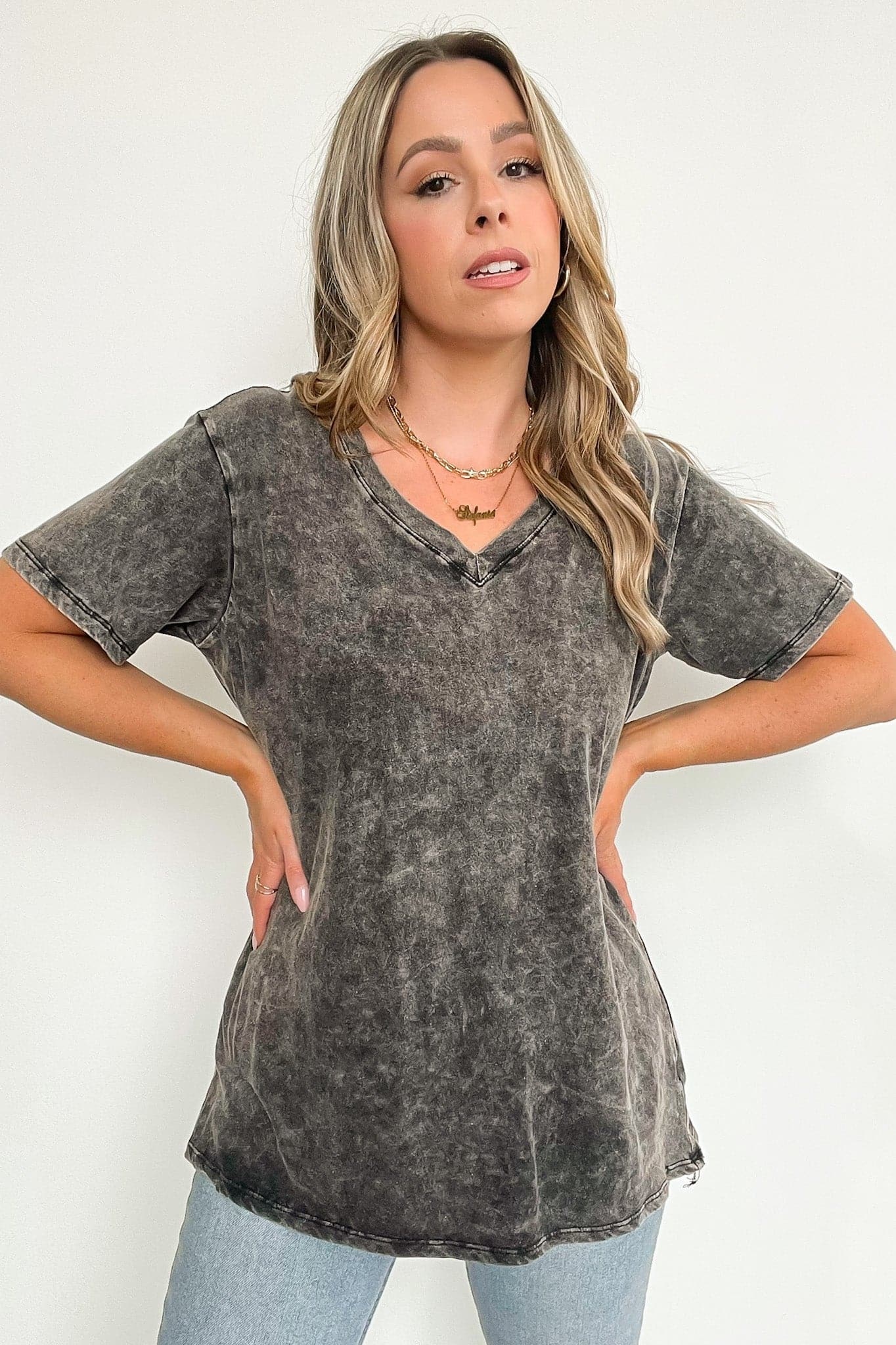 Soliel Acid Wash V-Neck Relaxed Fit Top - BACK IN STOCK