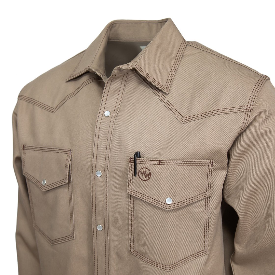 Our Western Yoke Triple Stitched Cotton Twill Welding Shirts are manufactured with the utmost quality. Featuring organic Peruvian cotton and a standard fit, the shirts are designed to provide maximum comfort and durability. With triple hand-stitched construction, these work shirts are sure to last.