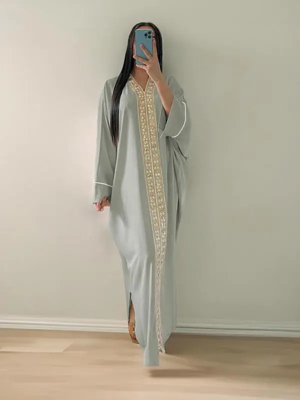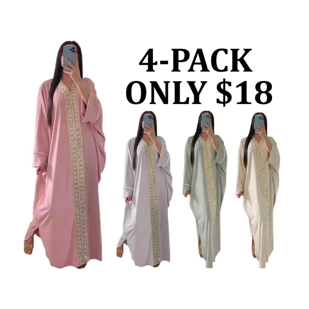 【8-Piece Complete Collection】Set includes eight elegant kaftan dresses with intricate embroidered designs, offering versatile modest wear options for summer occasions