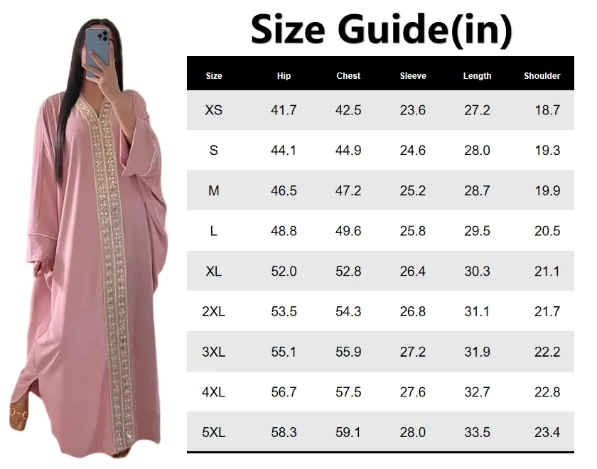 | Design | V Neck, Batwing Sleeves, Embroidered |