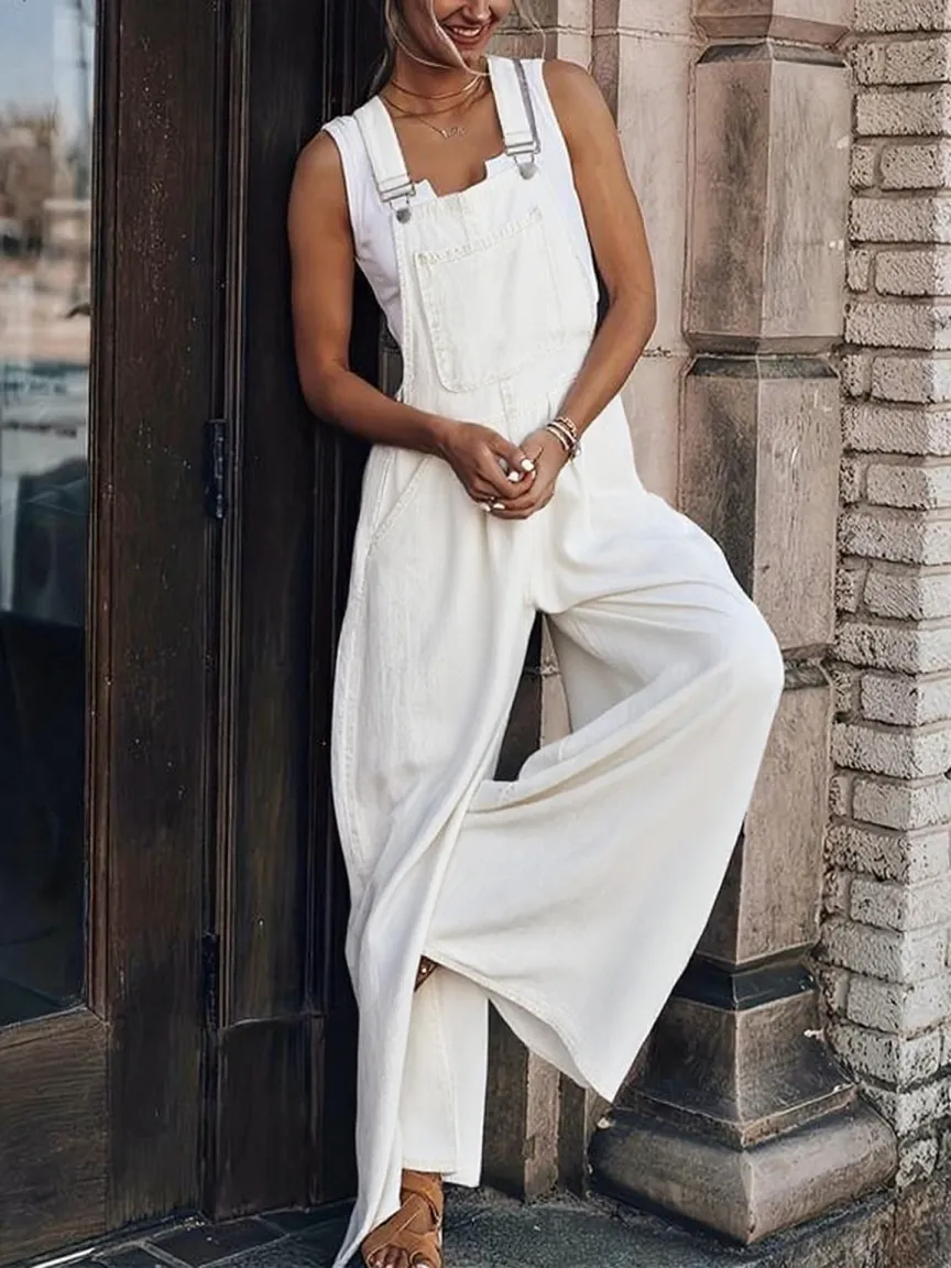 【Functional Pockets】 Convenient pockets make this jumpsuit practical for everyday wear while keeping the style intact.