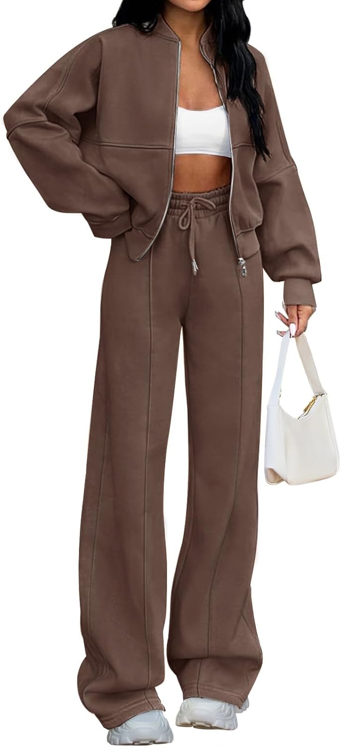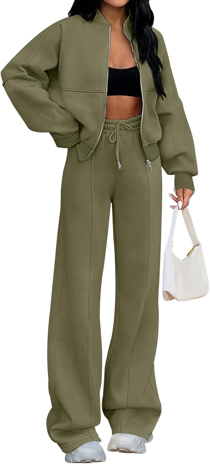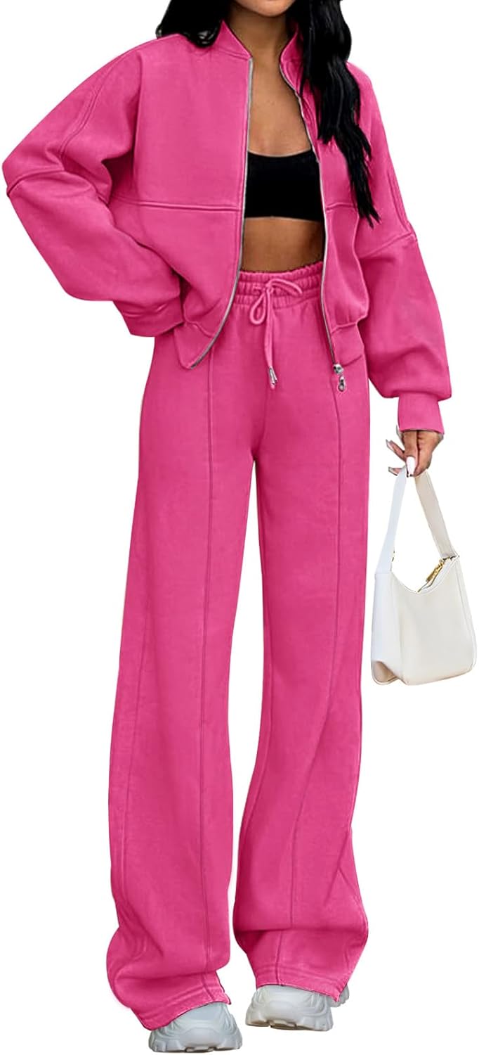 • Christmas Deals Women's Fall 2 Piece Sweatsuits Set Long Sleeve Zip Up Sweatshirt Wide Leg Sweatpants Lounge Sets
