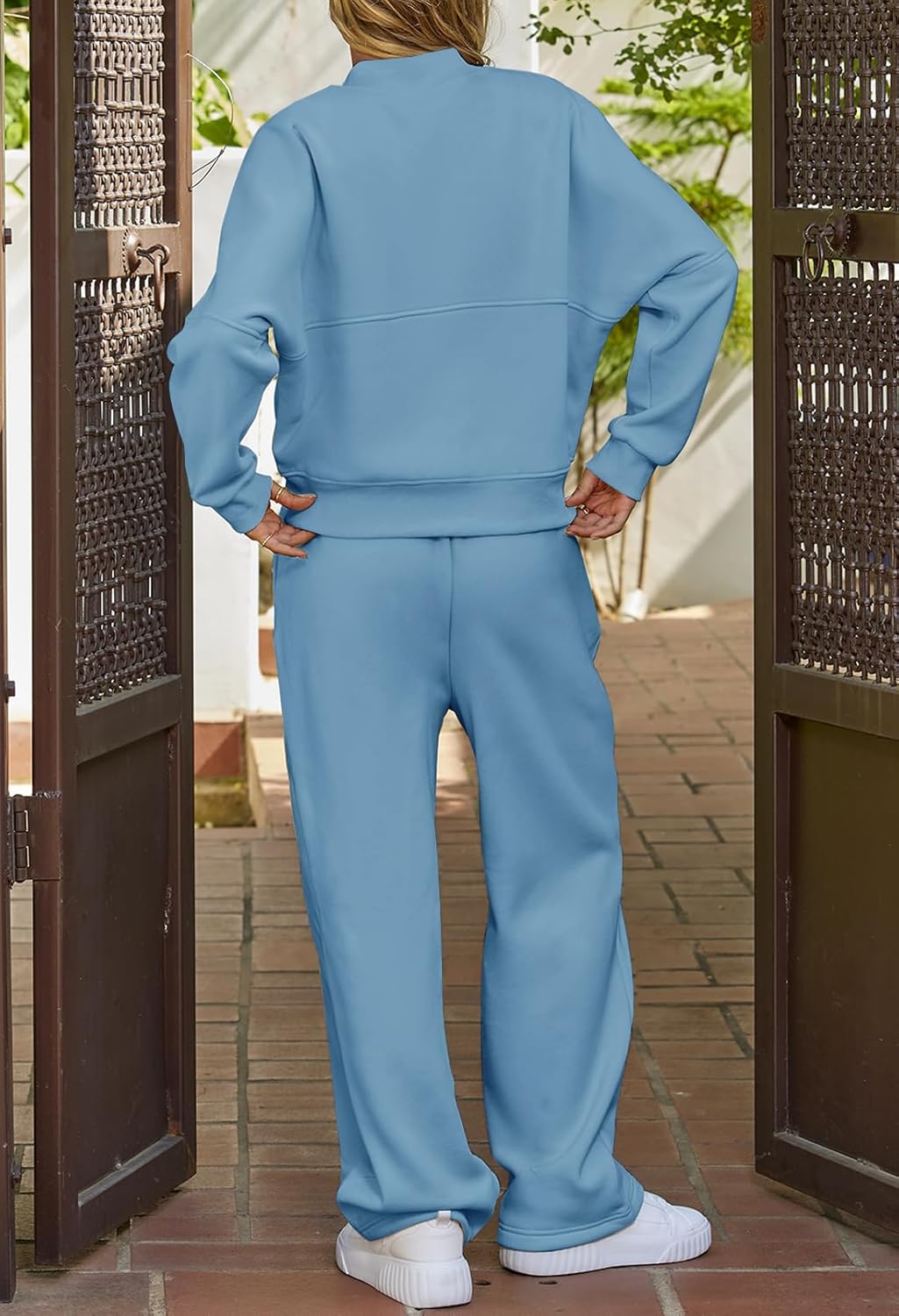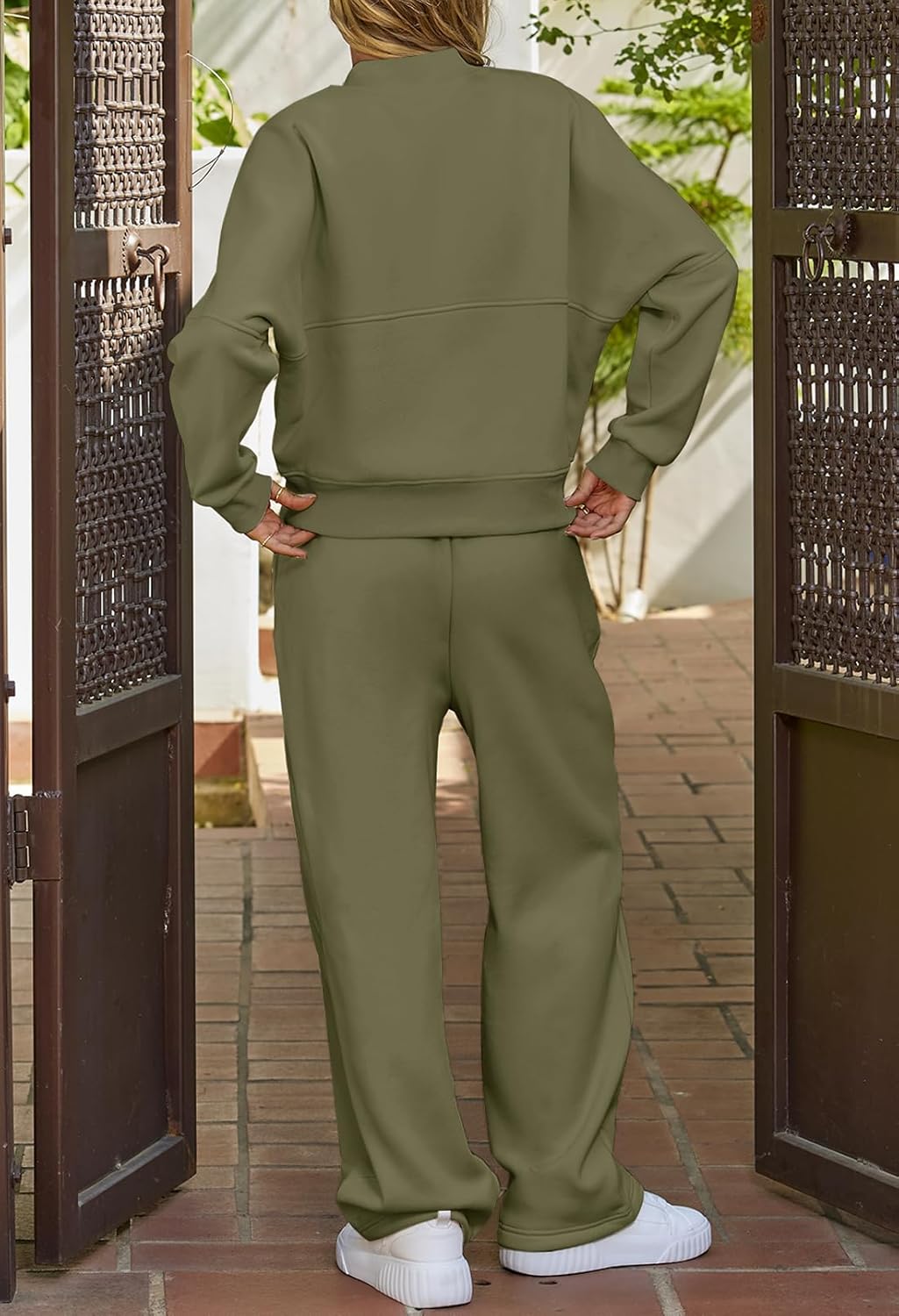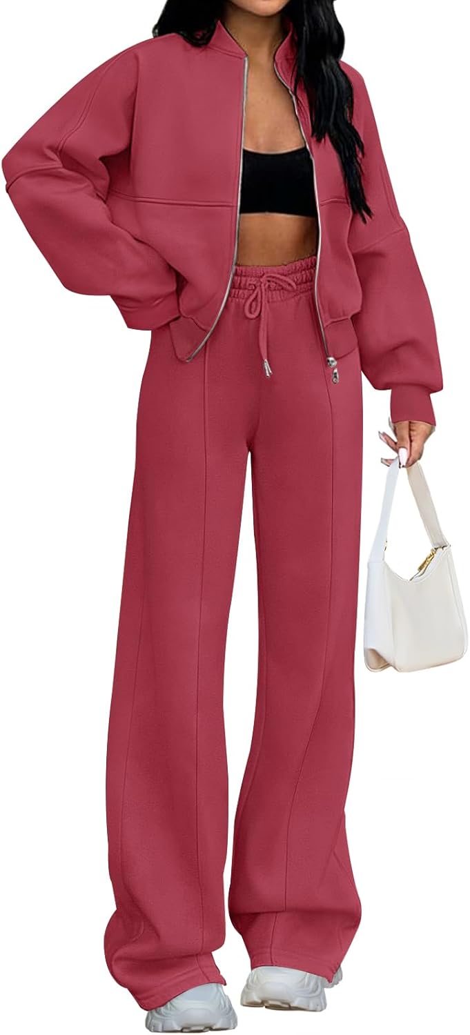 • Christmas Deals Women's Fall 2 Piece Sweatsuits Set Long Sleeve Zip Up Sweatshirt Wide Leg Sweatpants Lounge Sets