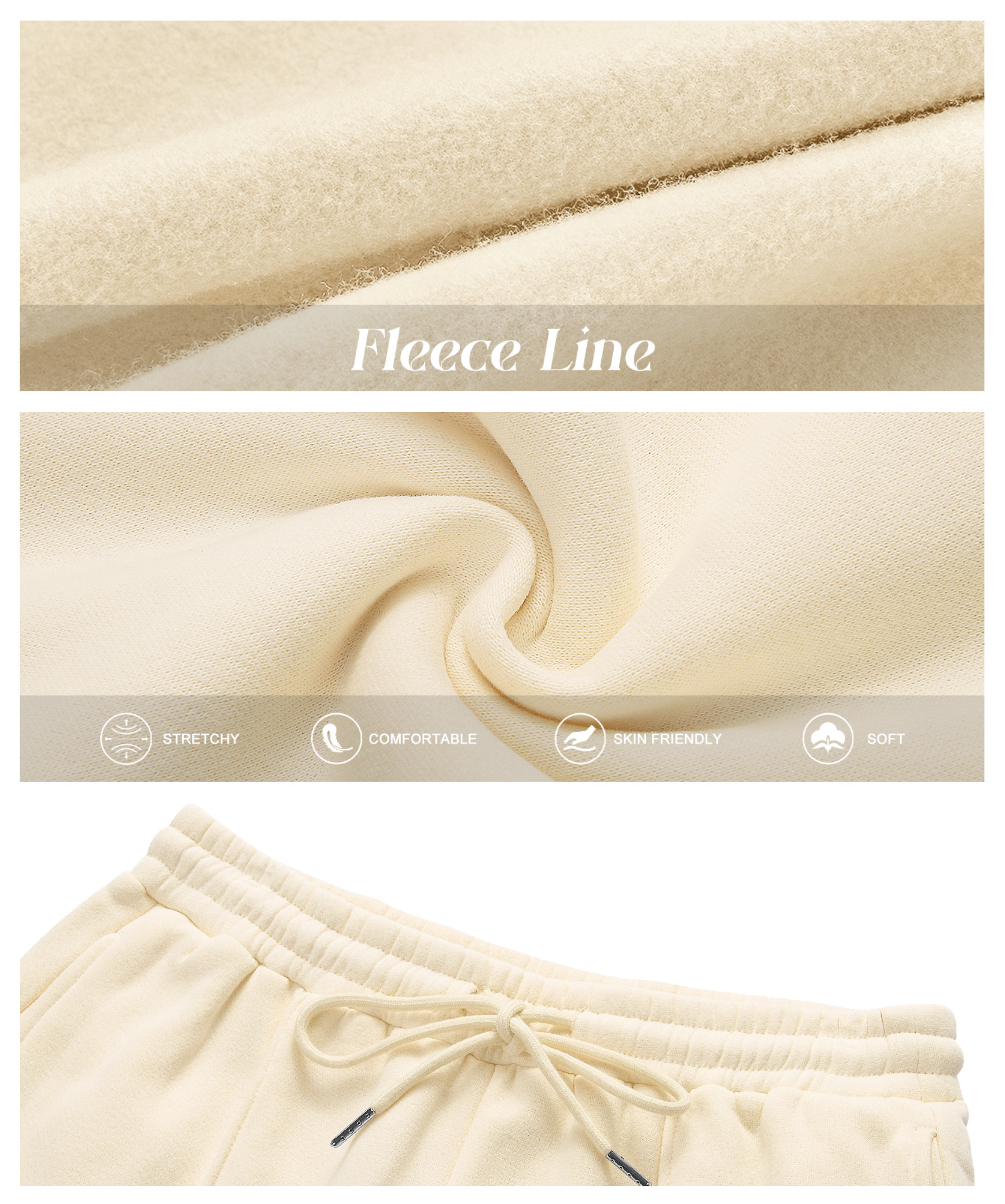 • Sweatpants: High-waisted, wide-leg design with elastic drawstring waistband