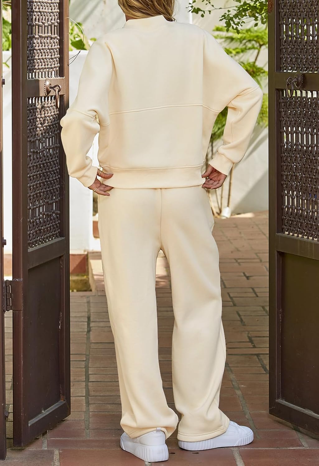 Christmas Deals Women's Fall 2 Piece Sweatsuits Set Long Sleeve Zip Up Sweatshirt Wide Leg Sweatpants Lounge Sets