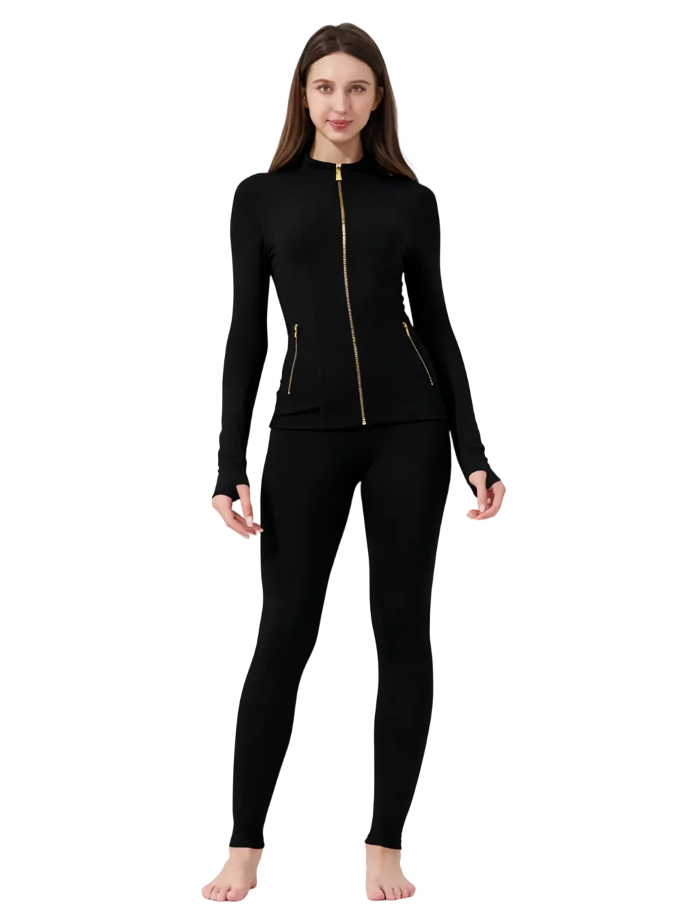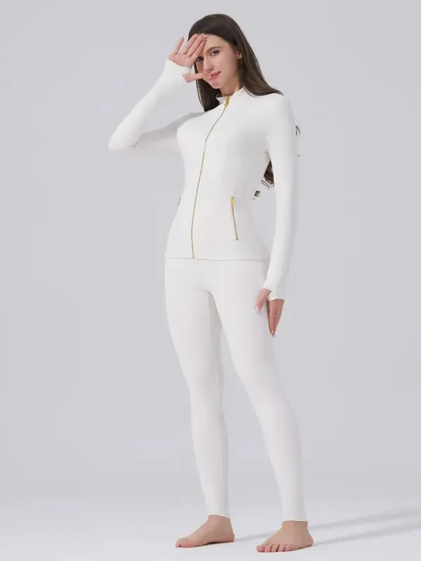 【Fashion Gold Zipper】Distinctive gold-color zipper adds a luxurious touch to the classic athletic look, elevating your workout ensemble