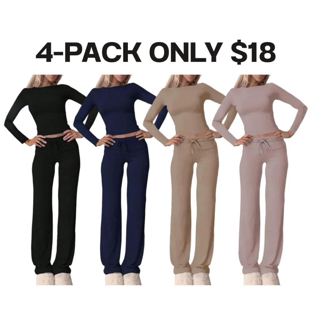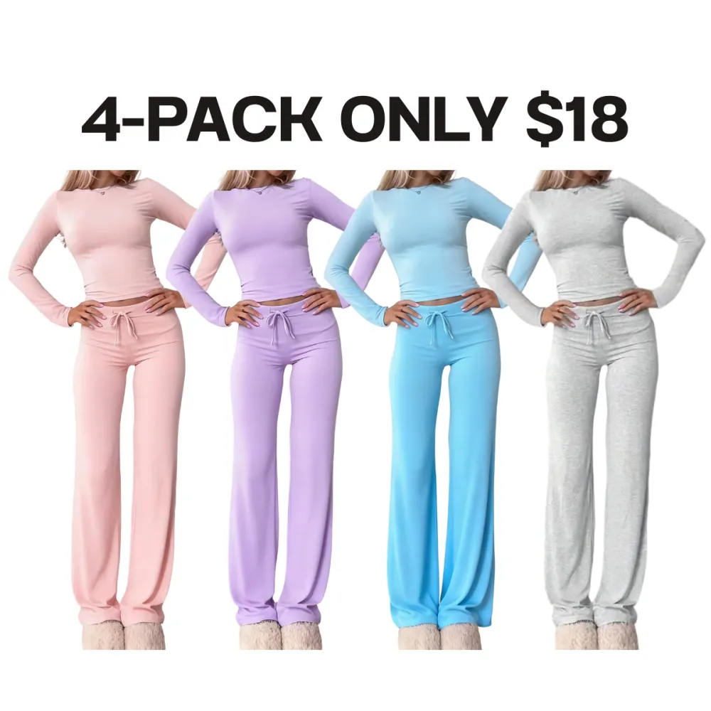 【8-Piece Complete Collection】Set includes eight coordinating lounge sets in versatile solid colors, offering complete sleepwear options for your seasonal wardrobe