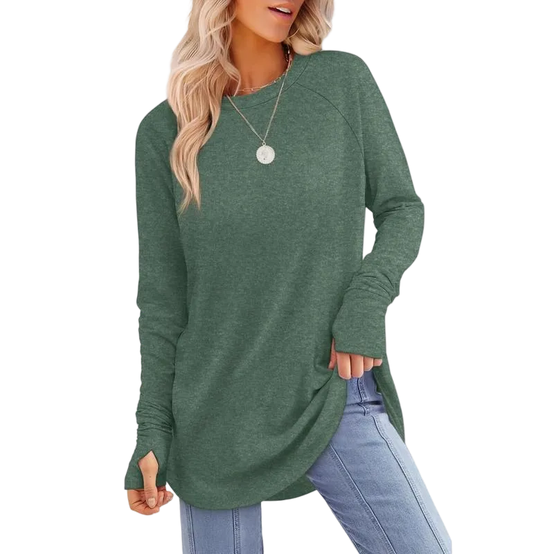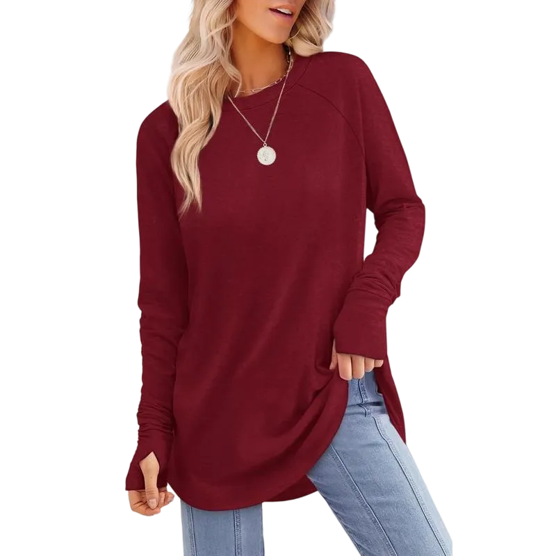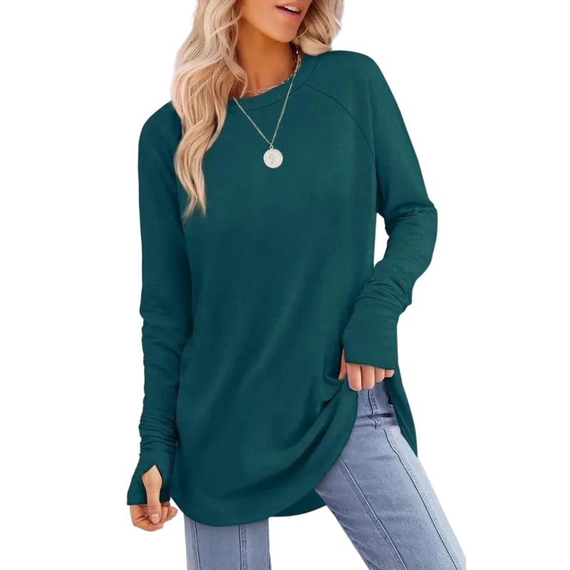 | Design | Thumb Holes, Curved Hem |