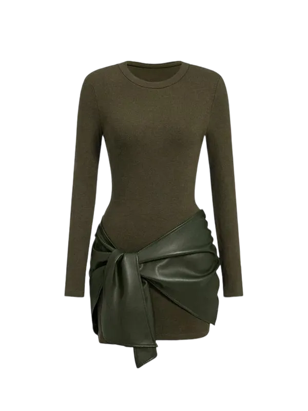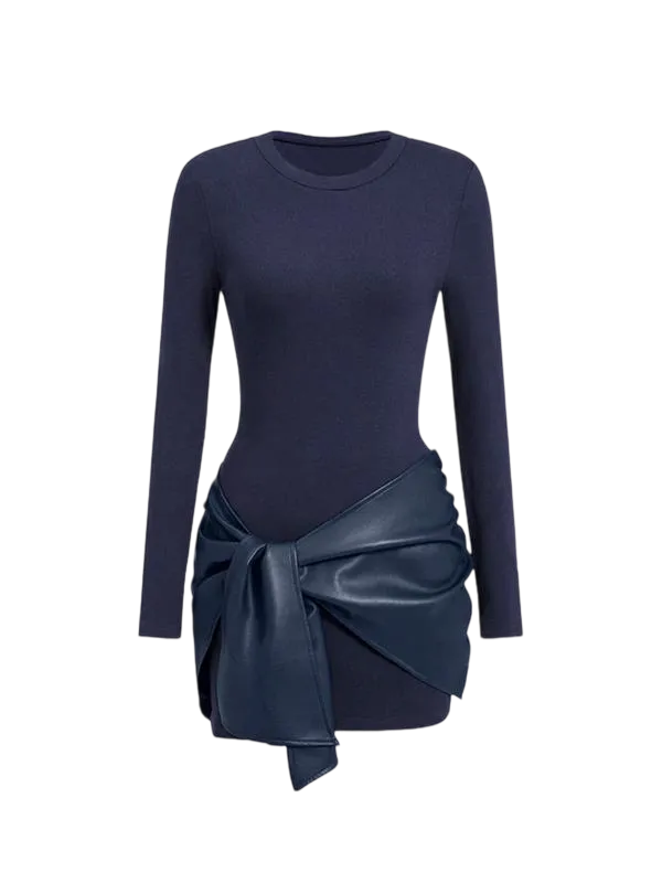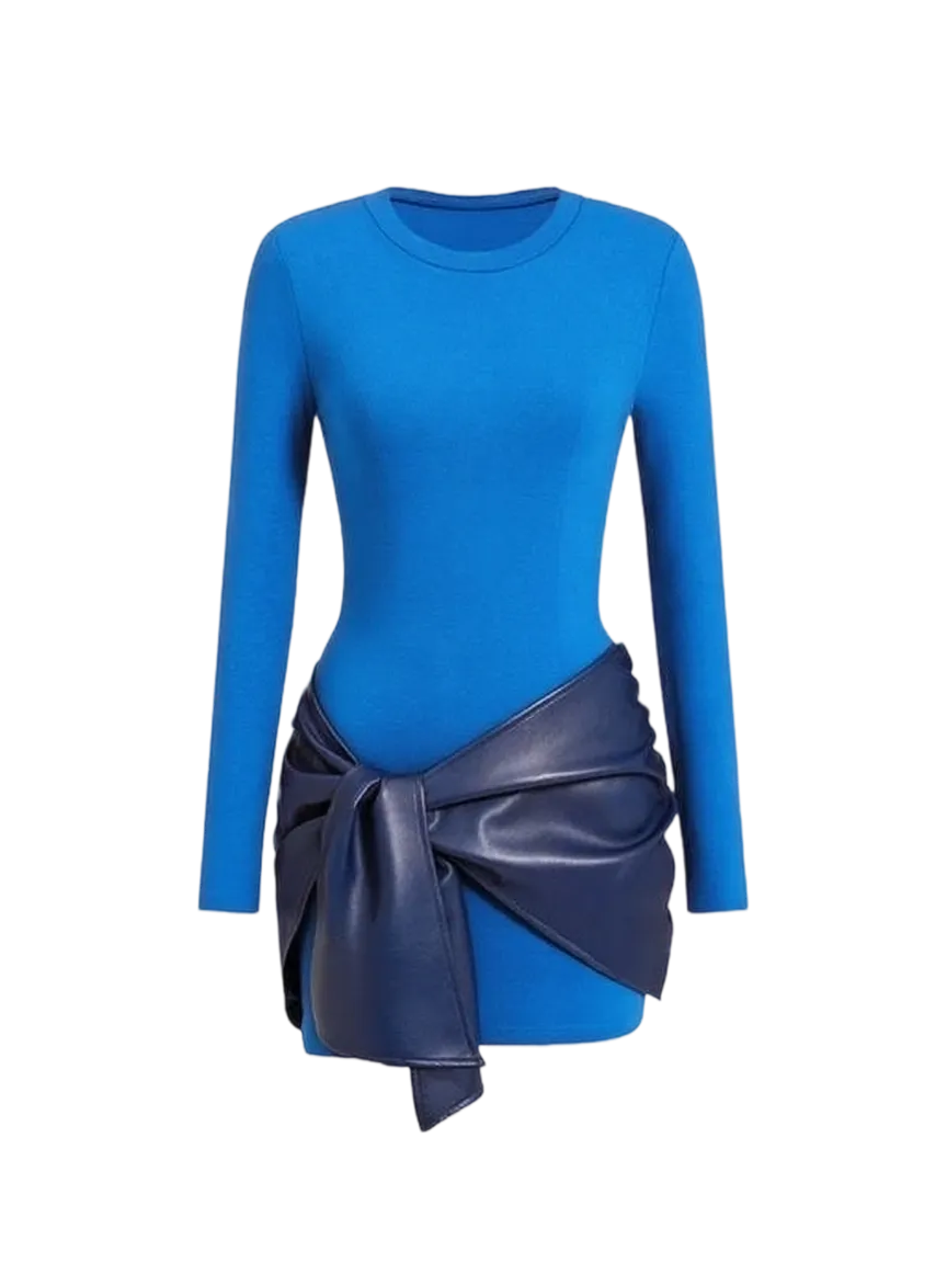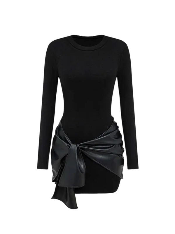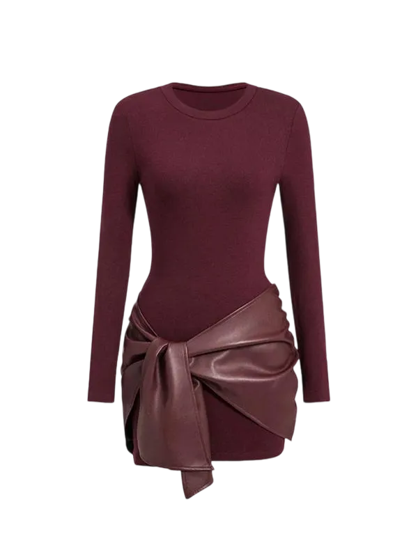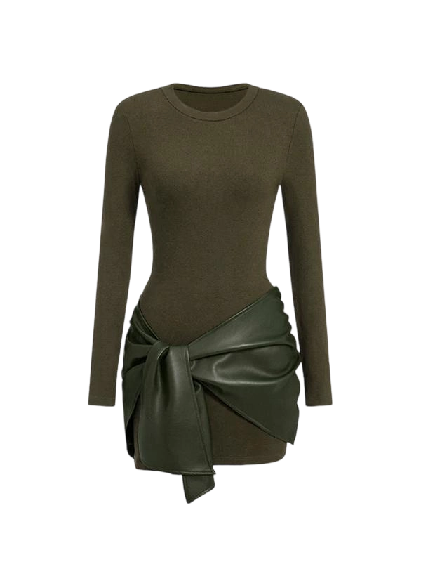 Women's Patchwork Knot Side Long Sleeve Dress