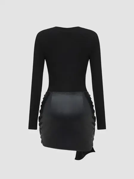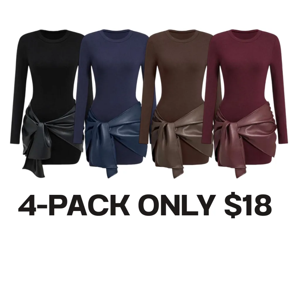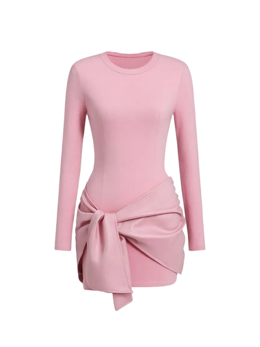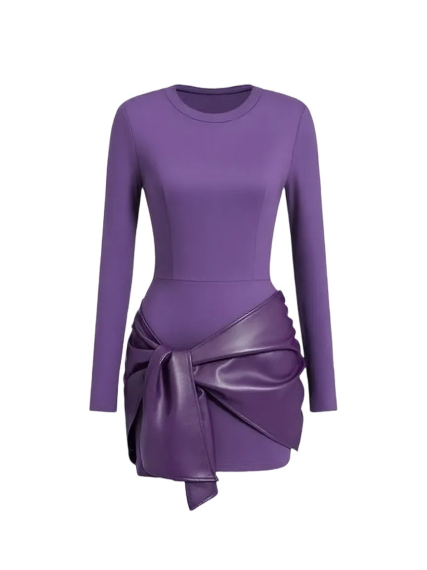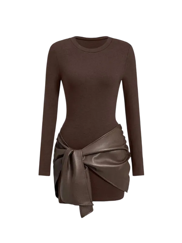 Women's Patchwork Knot Side Long Sleeve Dress