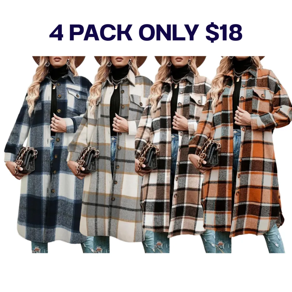 8-Piece Complete Collection】Set includes eight plaid print coats in various color combinations, providing versatile outerwear options for your winter wardrobe